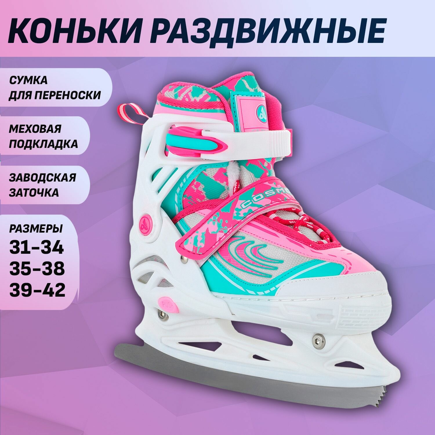 Коньки раздвижные COSMO (АК) pink (L, 39-42) информация: