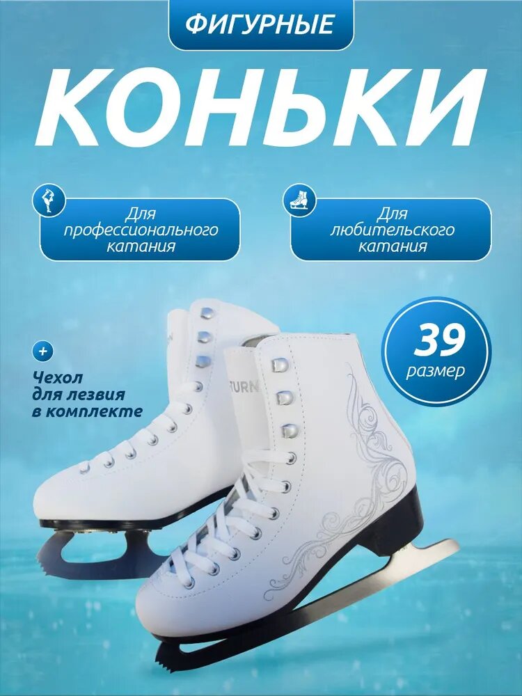 Коньки фигурные "ORNAMENT" серебро, размер 39. Для профессионального и любительского катания. Артикул КФ-8917 информация:
