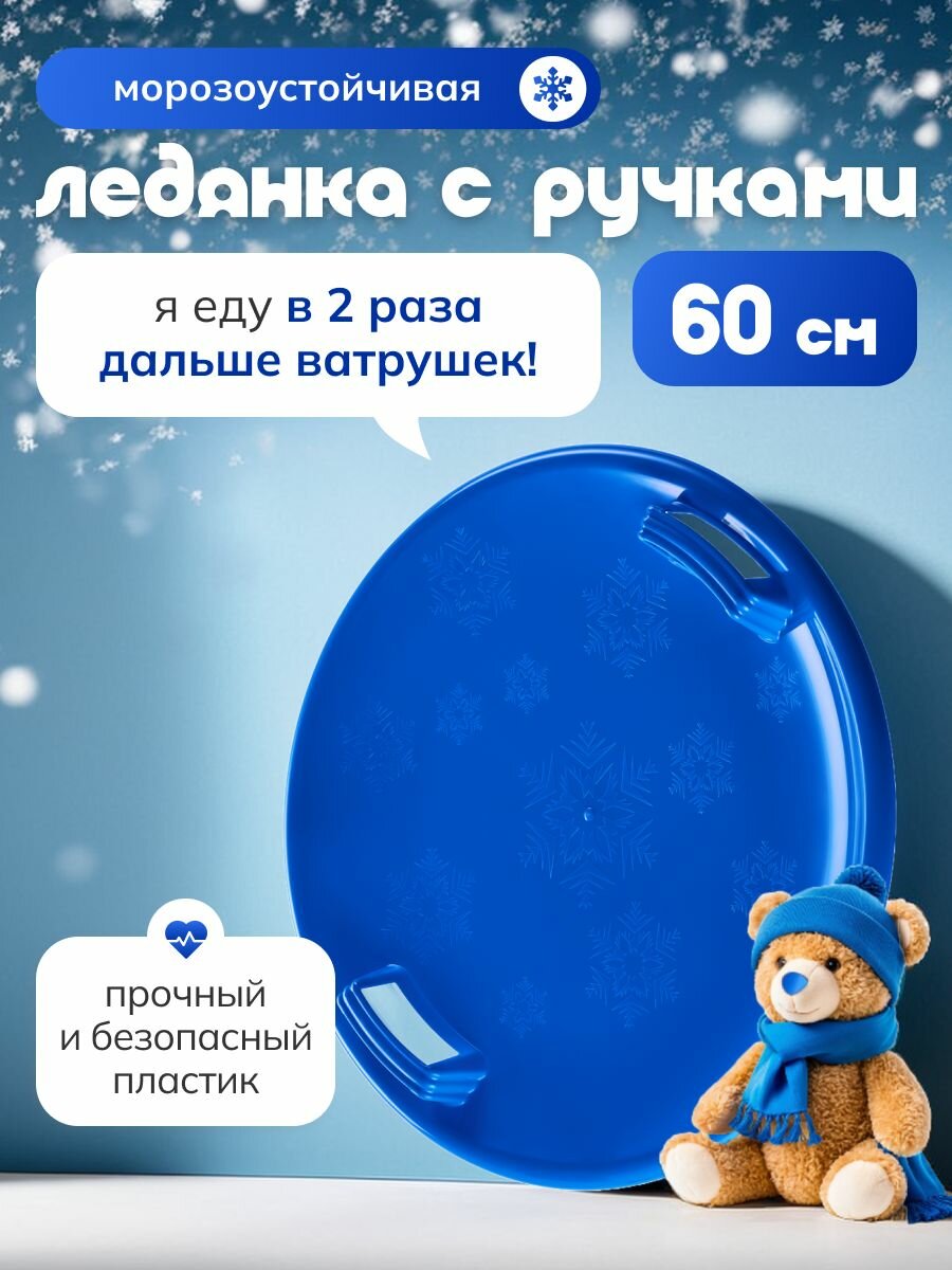 Ледянка "Мой уютный дом", для горок, ударопрочная, с ручками, синяя, 60x60 см информация: