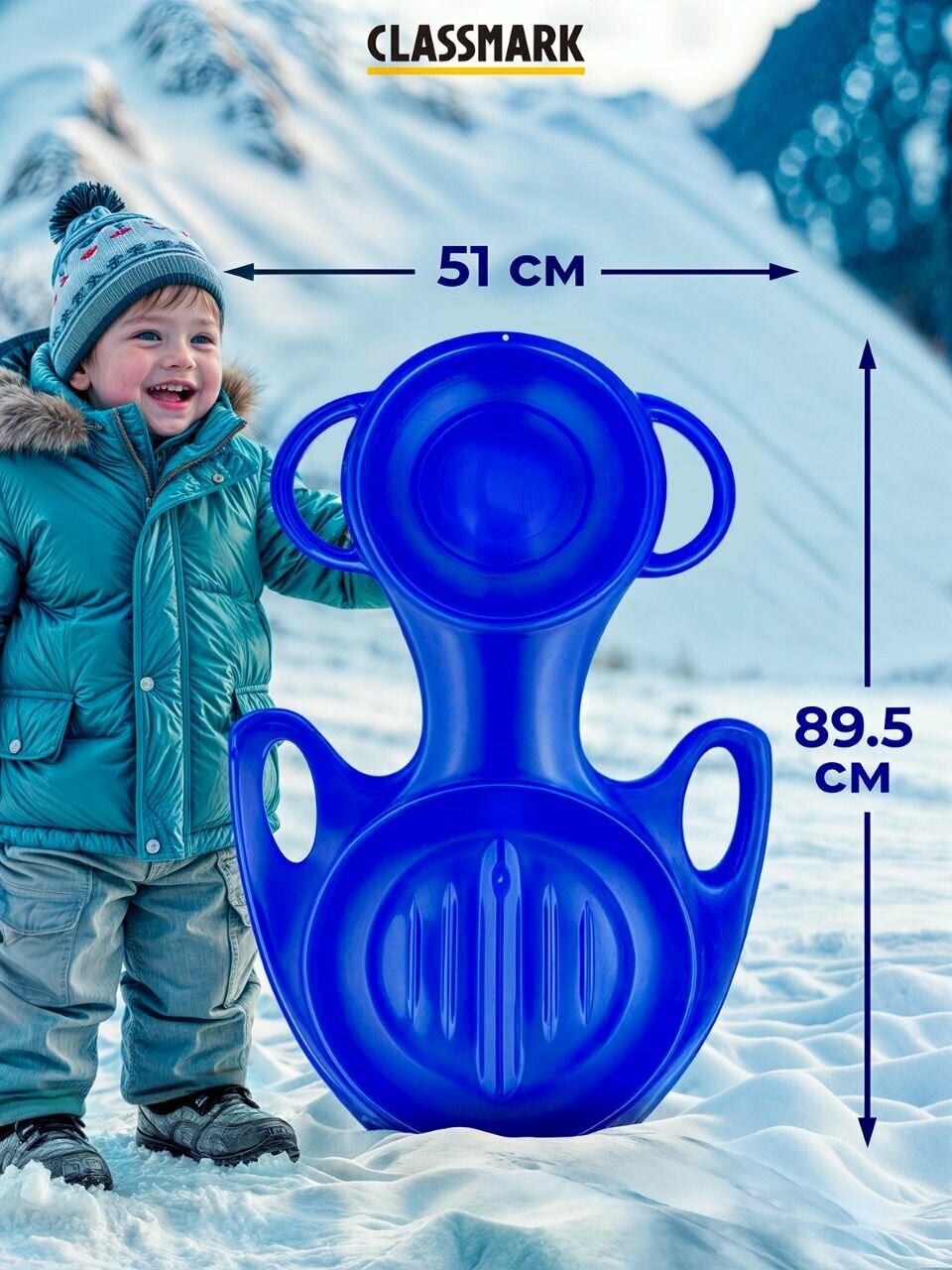 Ледянка детская с ручками Classmark для катания с горки, пластиковая и морозостойкая для девочки и мальчика, синяя информация: