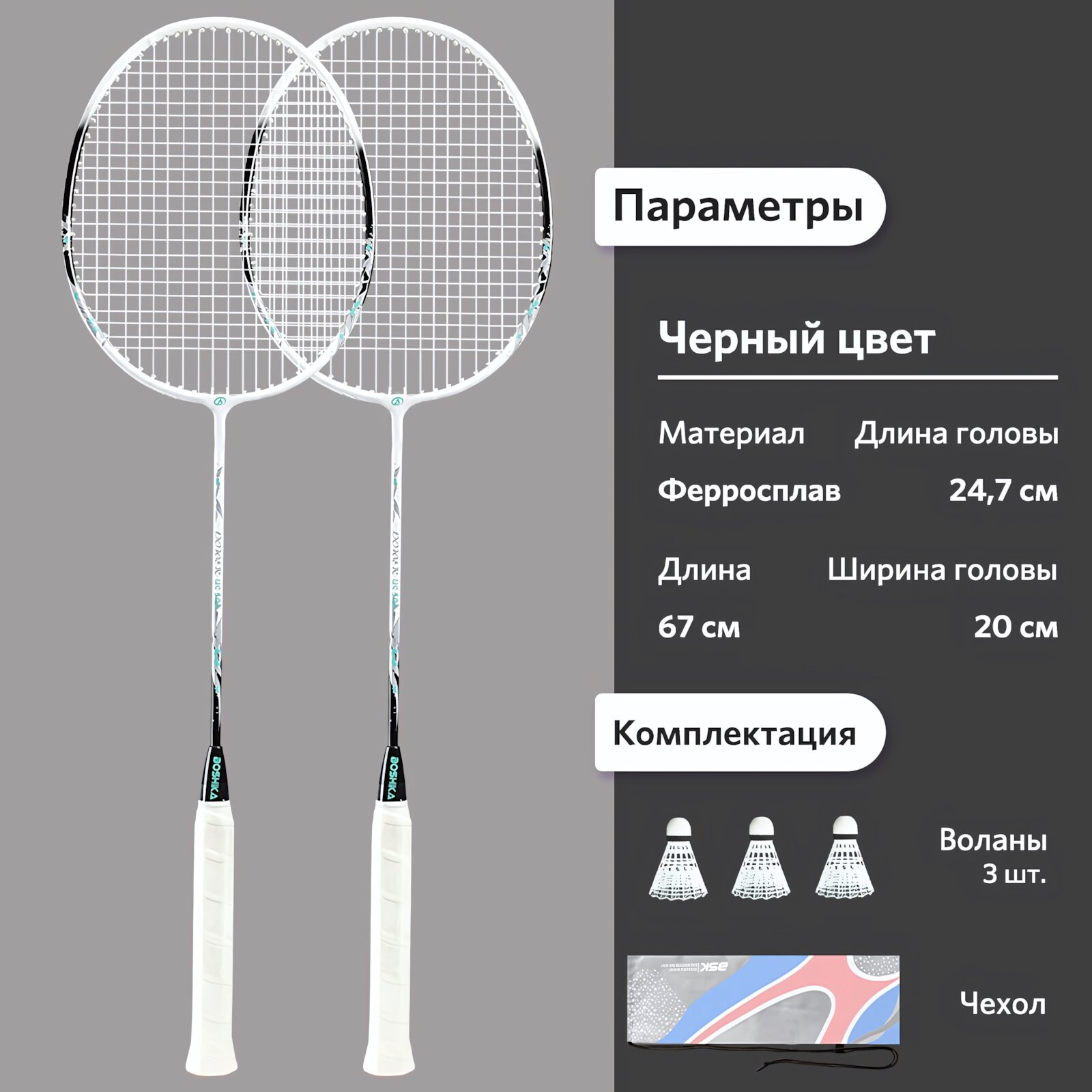 10 цен на Бадминтонные ракетки Boshika Macaron, 2 шт, для начинающих, черный цвет, 3 волана и чехол в комплекте