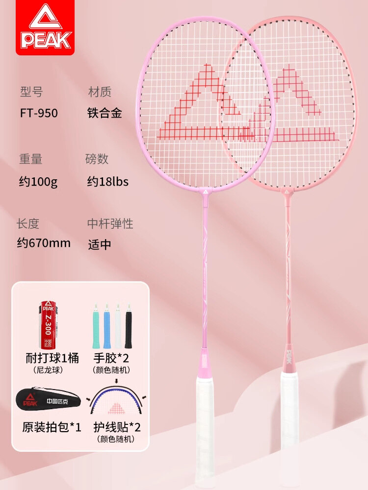 Ракетка бадминтонная Peak Single Shot Double Shot, небесно-голубая, персиково-розовая, подарочная упаковка 1 396 ₽