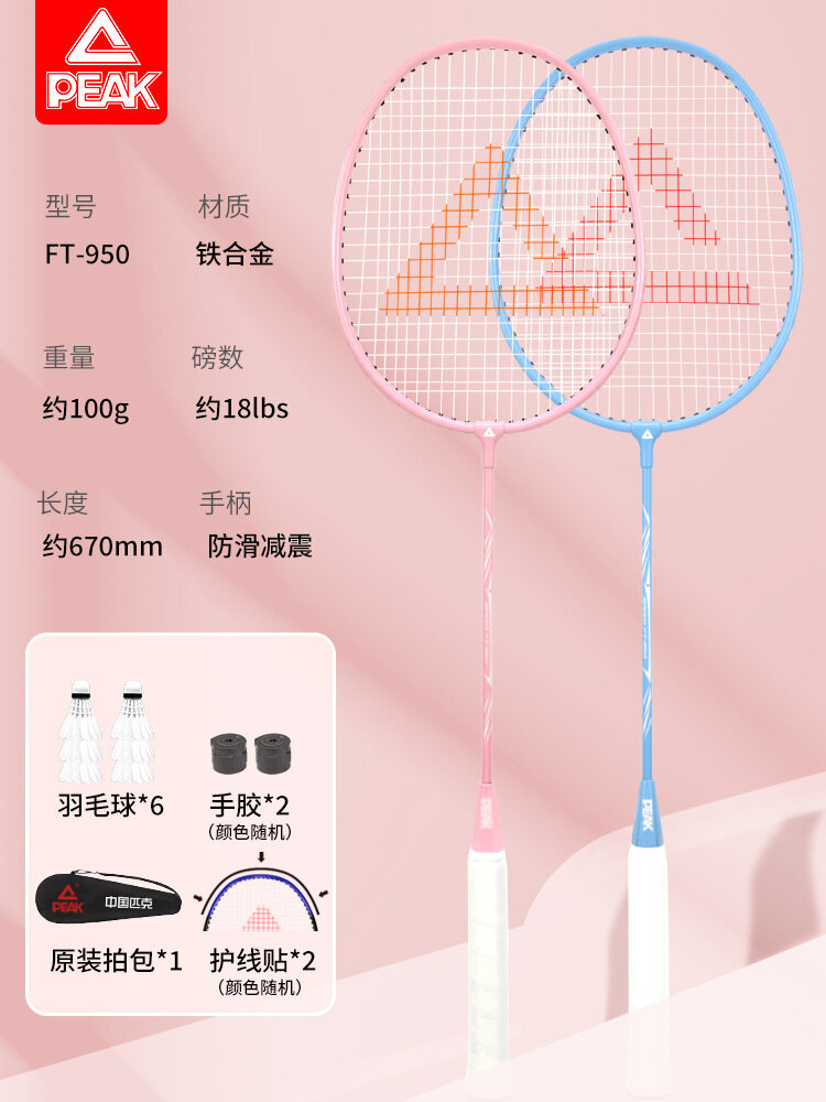 Ракетка бадминтонная Peak Single Shot Double Shot, небесно-голубая, персиково-розовая, подарочная упаковка 1 396 ₽