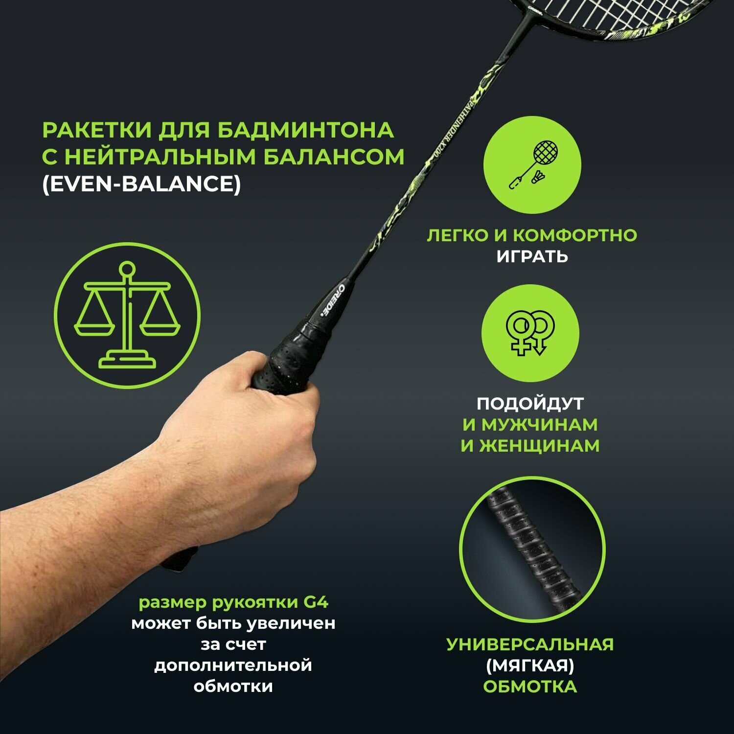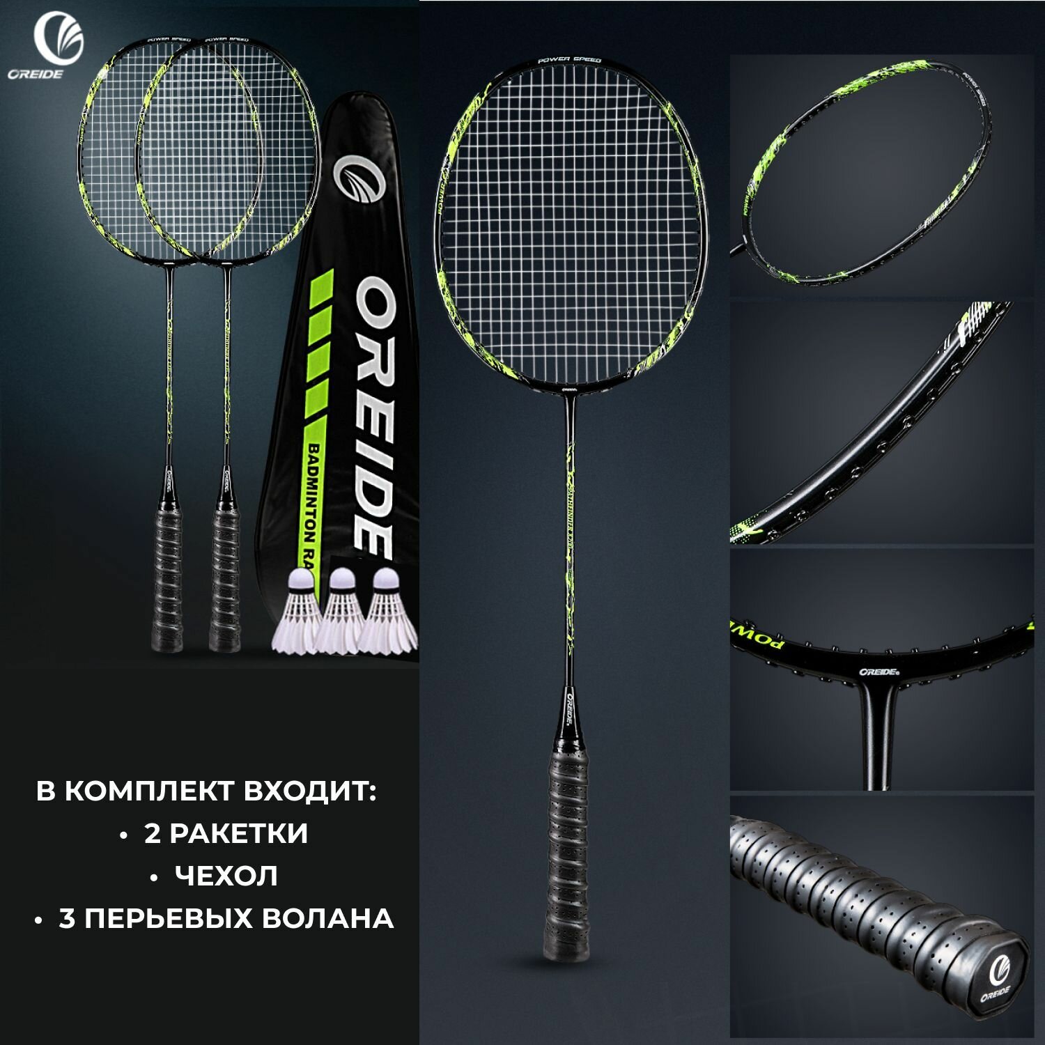Набор для бадминтона OREIDE: ракетка (2 шт.), волан перьевой (3 шт.), чехол, цвет зеленый информация: