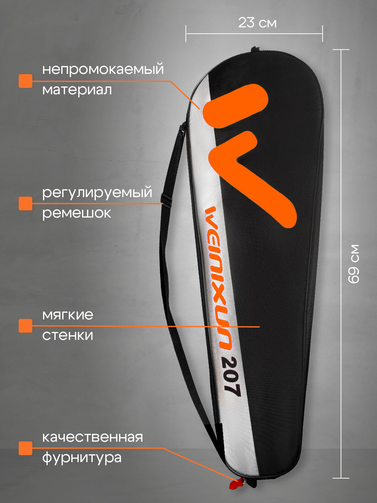 Набор для игры в бадминтон "Carbon Fiber", ракетка, 4 мяча, 2 полотенца, 2 подборщика, серая сумка
