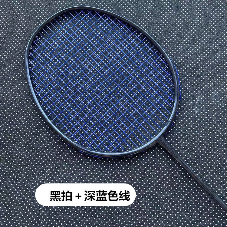 Ракетка для бадминтона "плетеная", углеродистая, тренировочная, черная, с темно-синей линией информация: