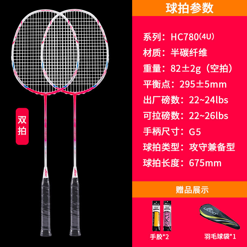 10 цен на Ракетка бадминтонная, 4U, full carbon, feather shot, двойная съемка, HC780