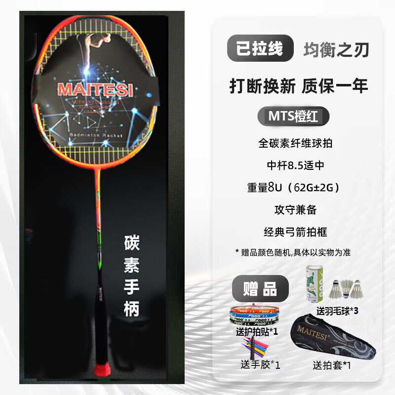 10 цен на Бадминтонная ракетка Single Shot 8U, углеродное волокно, оранжево-красная, для начинающих