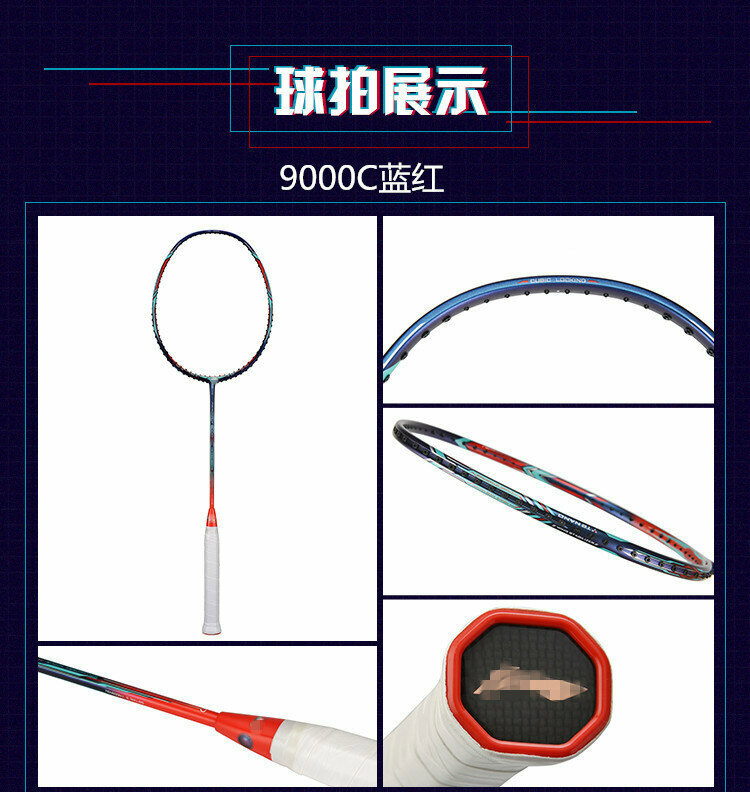 Отзывы на Ракетка бадминтонная 9000C, D7000i, full carbon, high-pound, синяя и красная