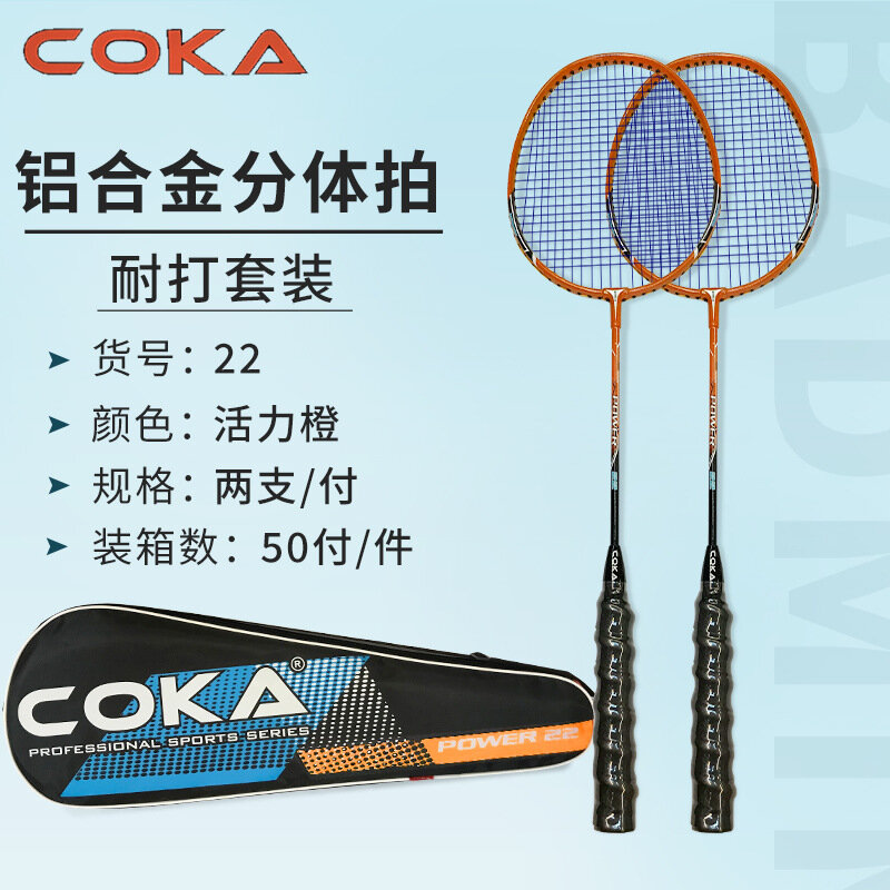Ракетка для бадминтона Cocker 22, алюминиевый сплав, двойная, для тренировок, оранжевая информация:
