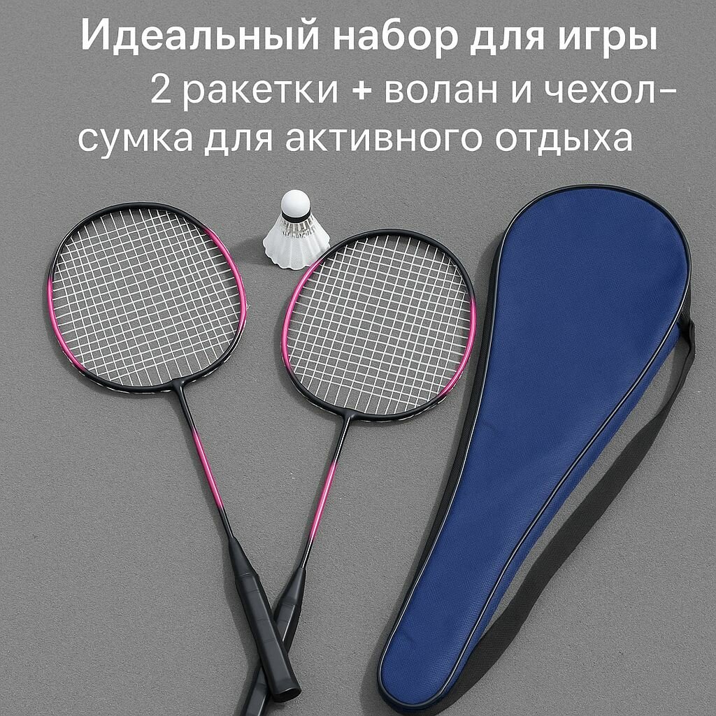 Набор для бадминтона, с воланом, струнами, чехлом, 2 ракетками, розовый информация: