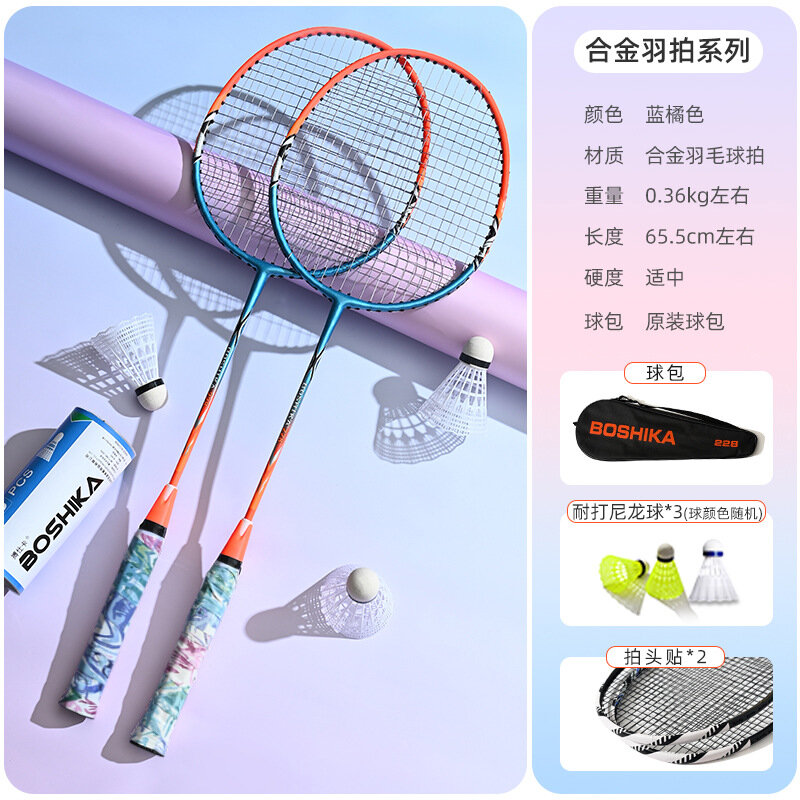 10 цен на Ракетки для бадминтона boshika, в чехле с тремя воланами, сине-оранжевый