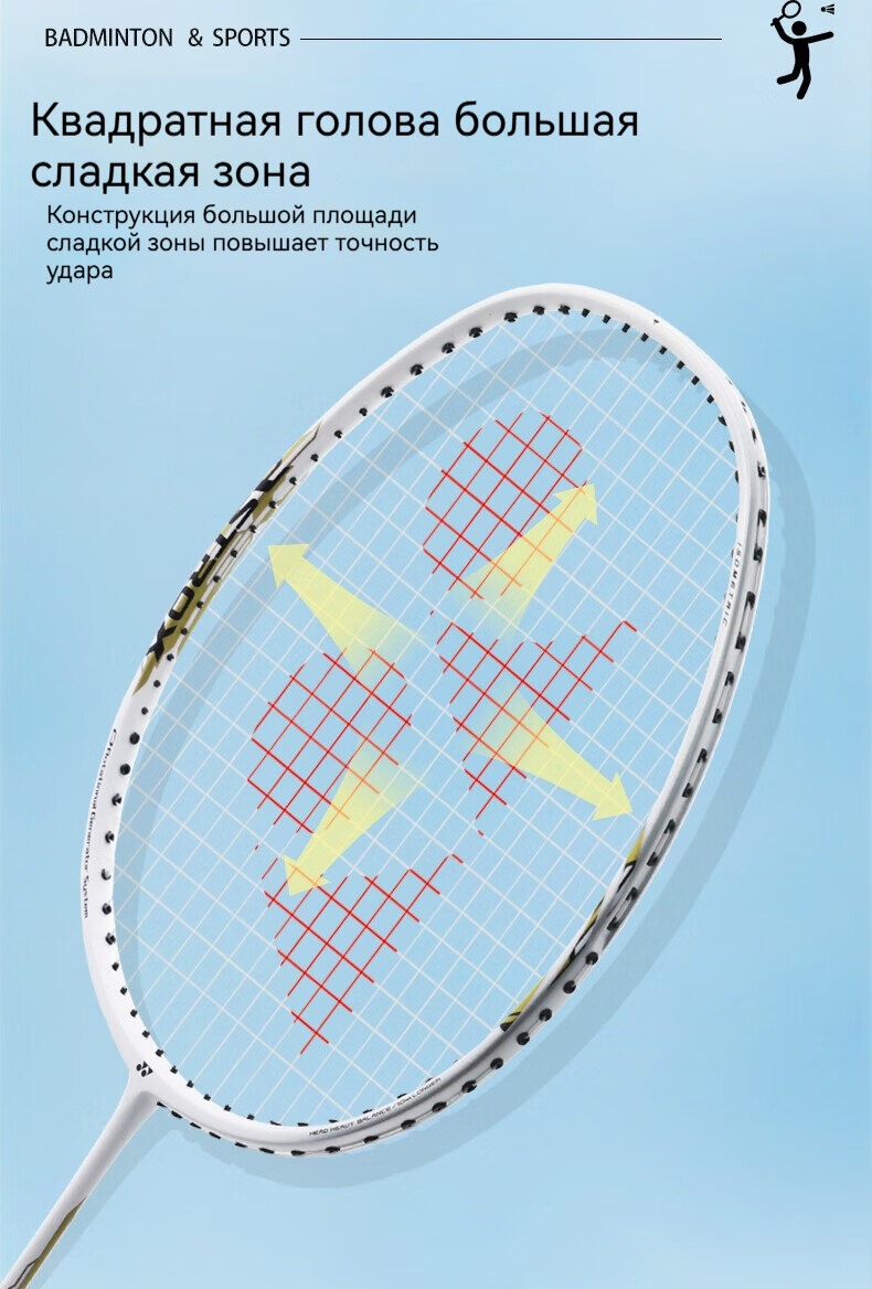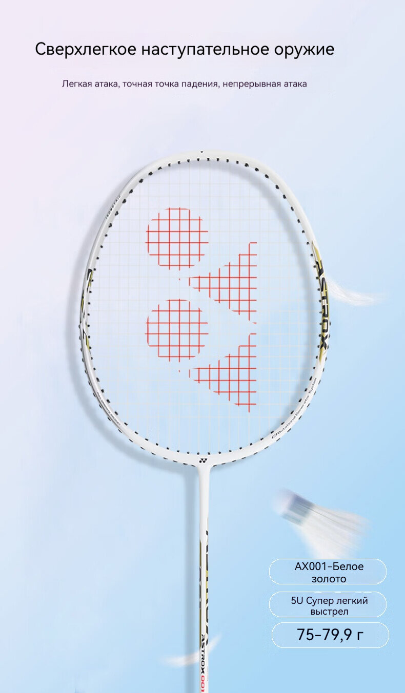 10 цен на Ракетка для бадминтона Yonex AX001, полностью углеродистая, тренировочная, для одиночного удара, белая
