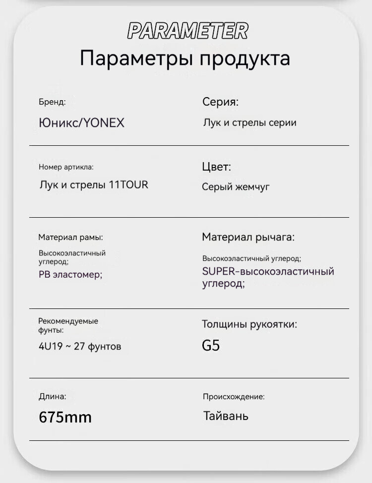 Отзывы на Бадминтонная ракетка YONEX ARC 11 TOUR gray pearl, полностью карбоновая, со шнуром 4u5, весит 26 фунтов