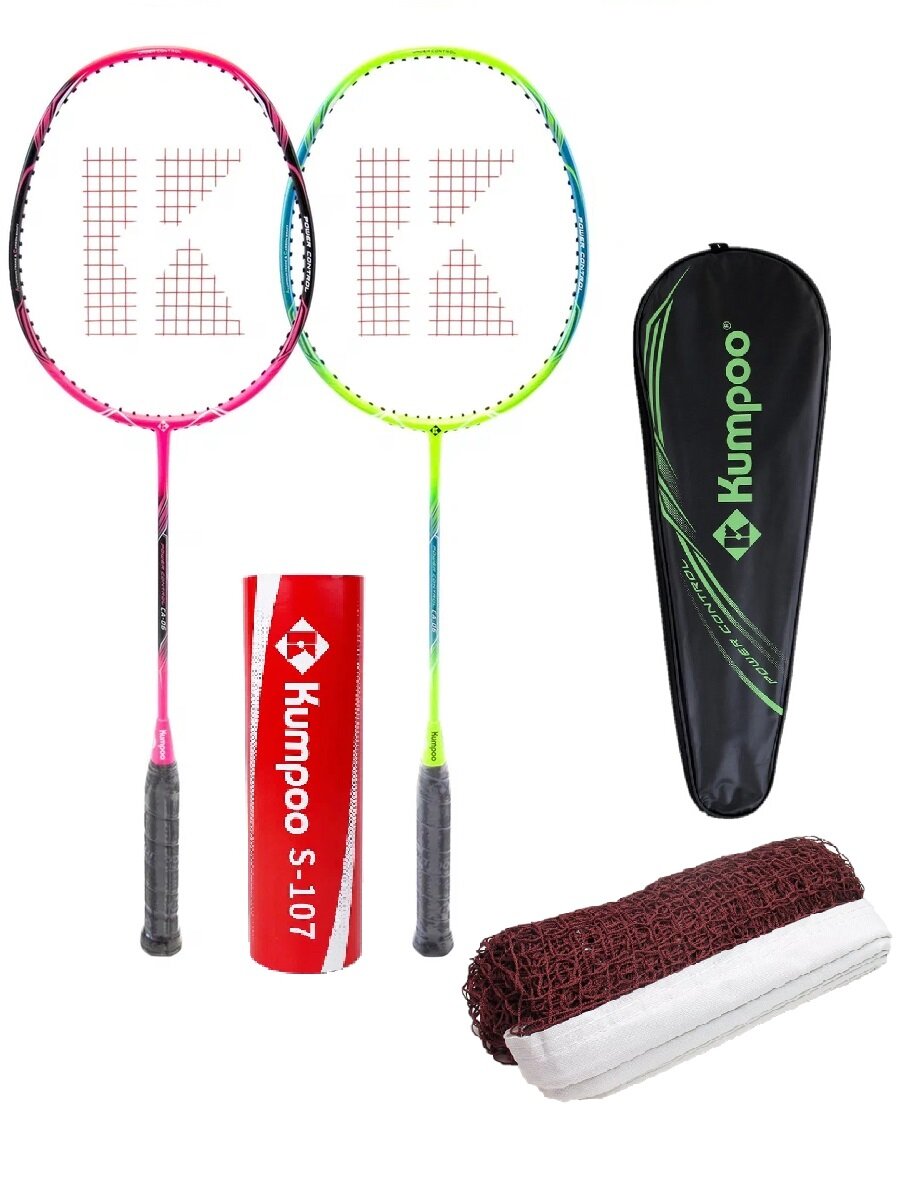 Набор для игры в бадминтон "Carbon Fiber", ракетка, 4 мяча, 2 полотенца, 2 подборщика, серая сумка