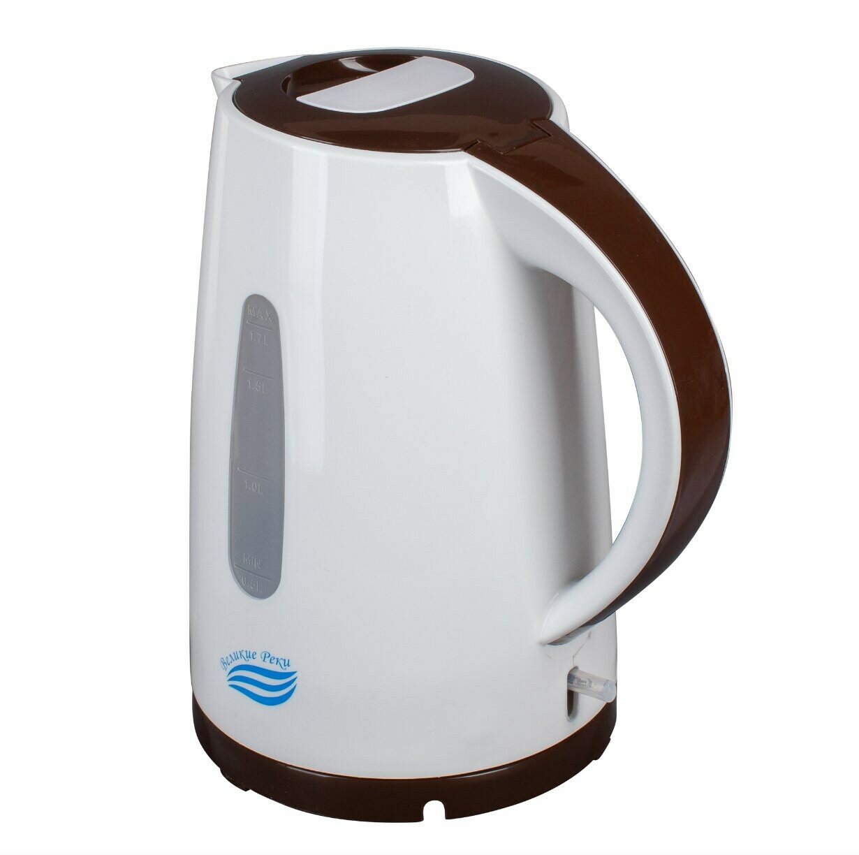 10 цен на Чайник электрический Великие Реки Томь-1 бел/коричневый, 1,7 л, пластик, 1850 Вт