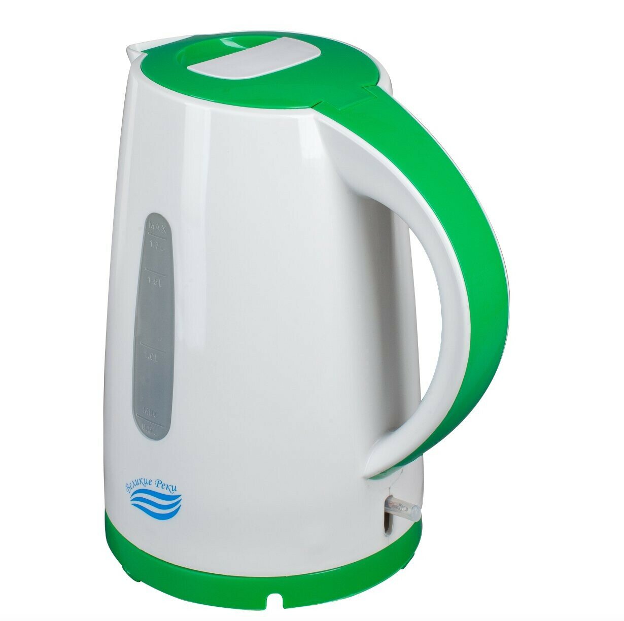 Чайник электрический Великие Реки Томь-1 белый/зеленый, 1,7 л, пластик, 1850 Вт
