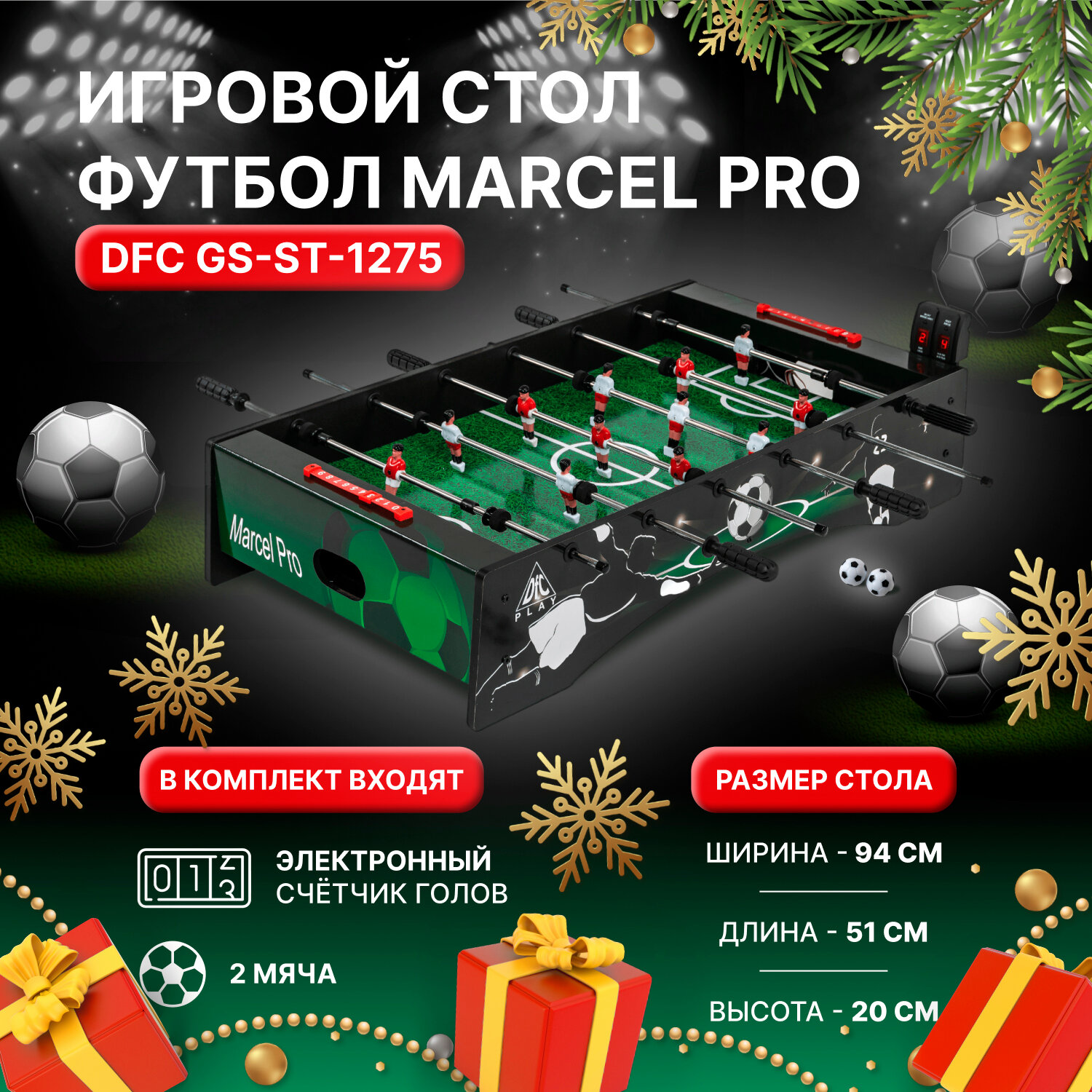 10 цен на Игровой стол - футбол DFC "Marcel Pro" , в комплекте 2 мячика и электронный счетчик очков.