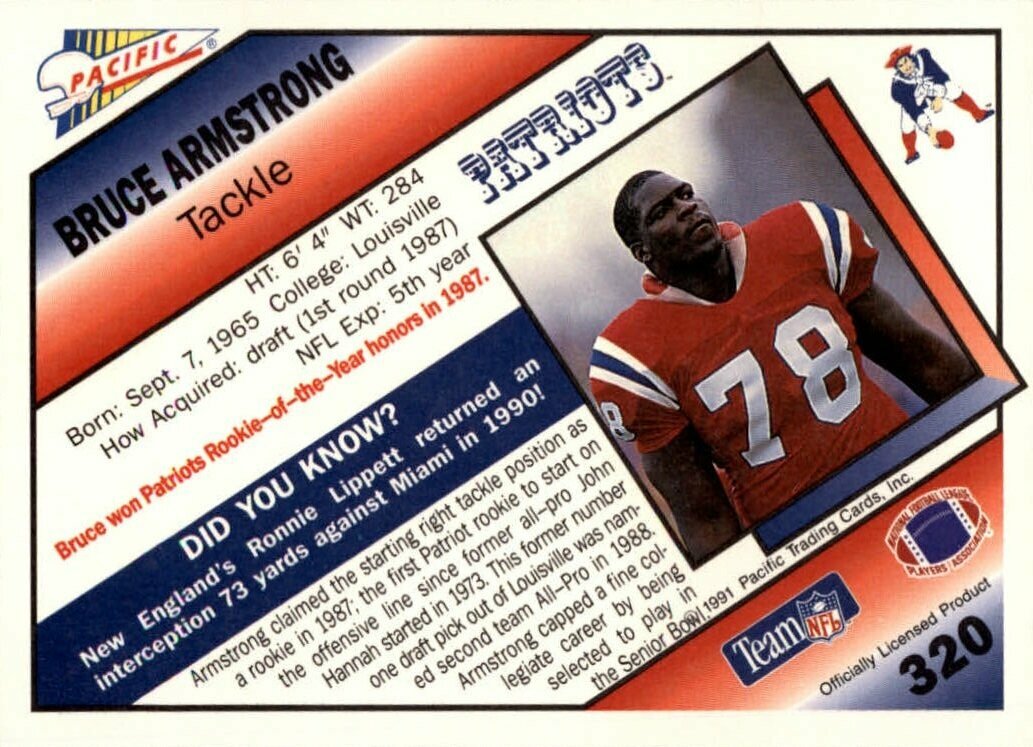 1991 NFL PRO Коллекционная карточка американский футбол №320 Bruce Armstrong информация: