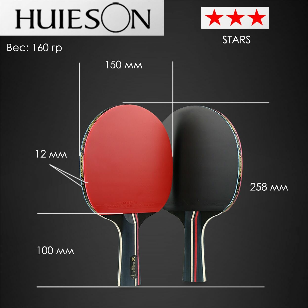 Ракетки для настольного тенниса Huieson 3 Stars + шарики для пинг-понг информация: