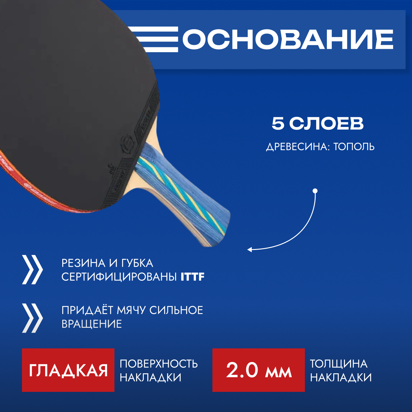 Ракетка для настольного тенниса 3* для атакующей игры, коническая рукоять