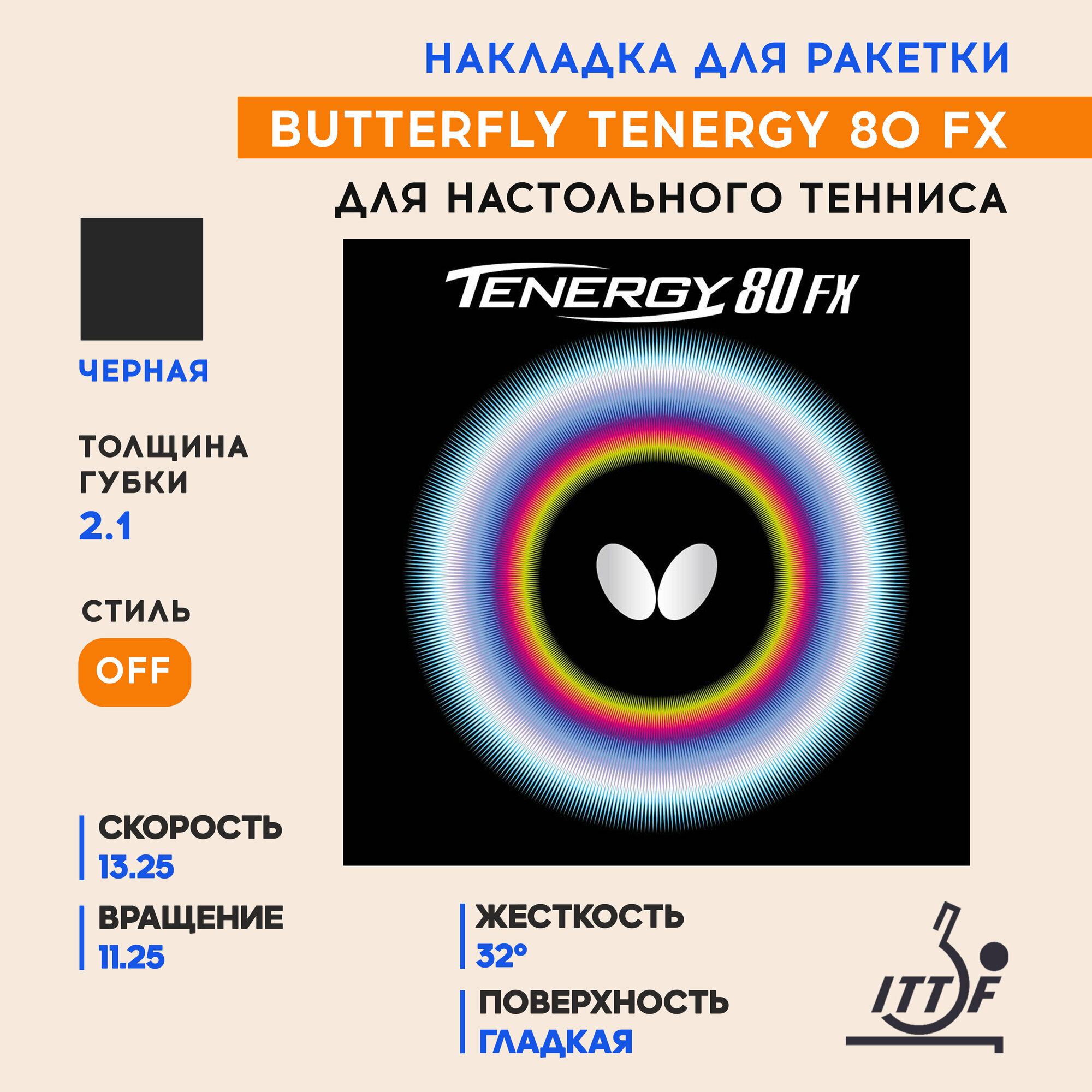 10 цен на Накладка для ракетки настольного тенниса Butterfly Tenergy 80 FX (цвет черный, толщина 2.1)