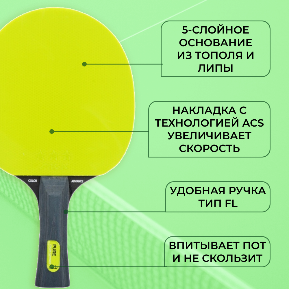 Ракетка для настольного тенниса Pure Color Advance (зеленый) информация: