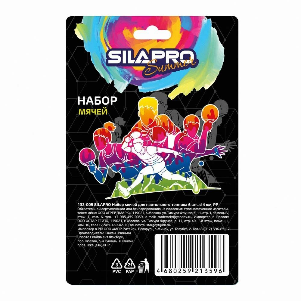 Набор мячей для настольного тенниса SILAPRO, 6 шт, d4 см, полипропилен информация: