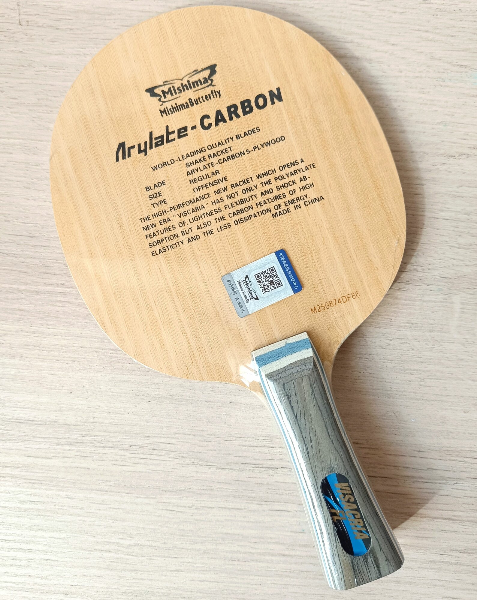 Основание для настольного тенниса Butterfly viscaria mishima Arylate carbon ALC / Ручка FL (Китай) информация: