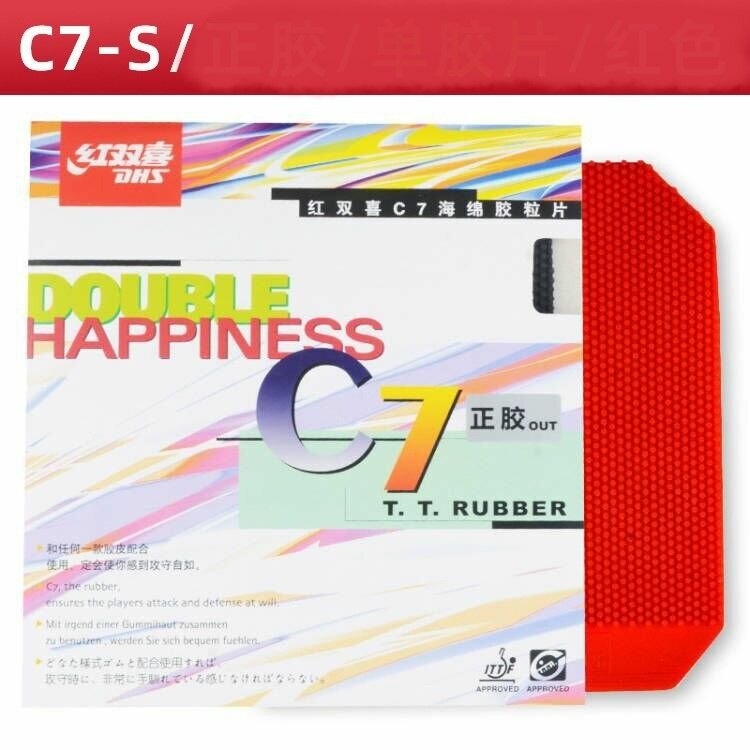Накладка DHS C7 шипы (оранжевая губка1.0мм) красная для настольного тенниса информация:
