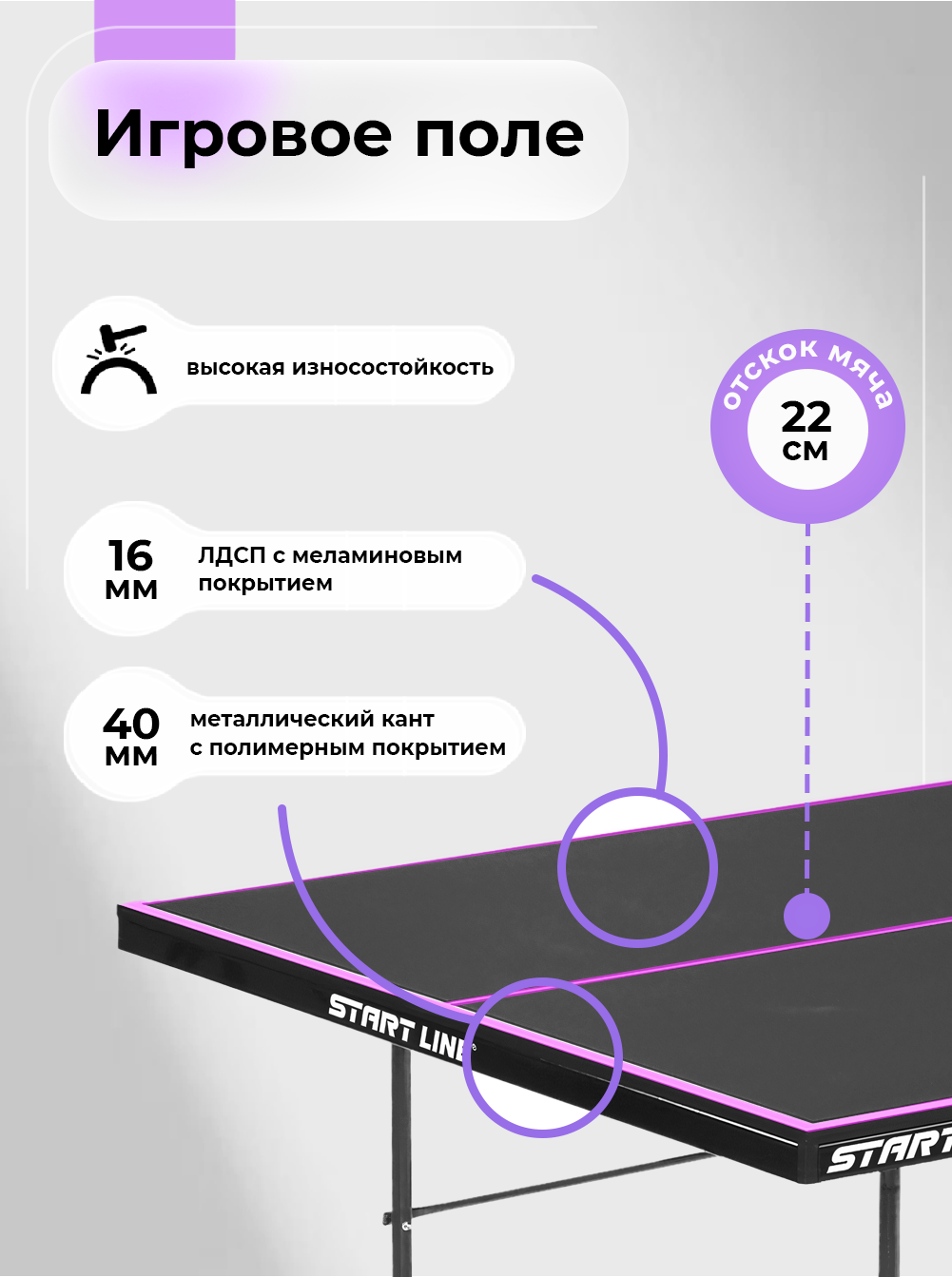 Теннисный стол Start Line Game Indoor черный, складной, для помещений, для дома, с встроенной сеткой и колесами информация: