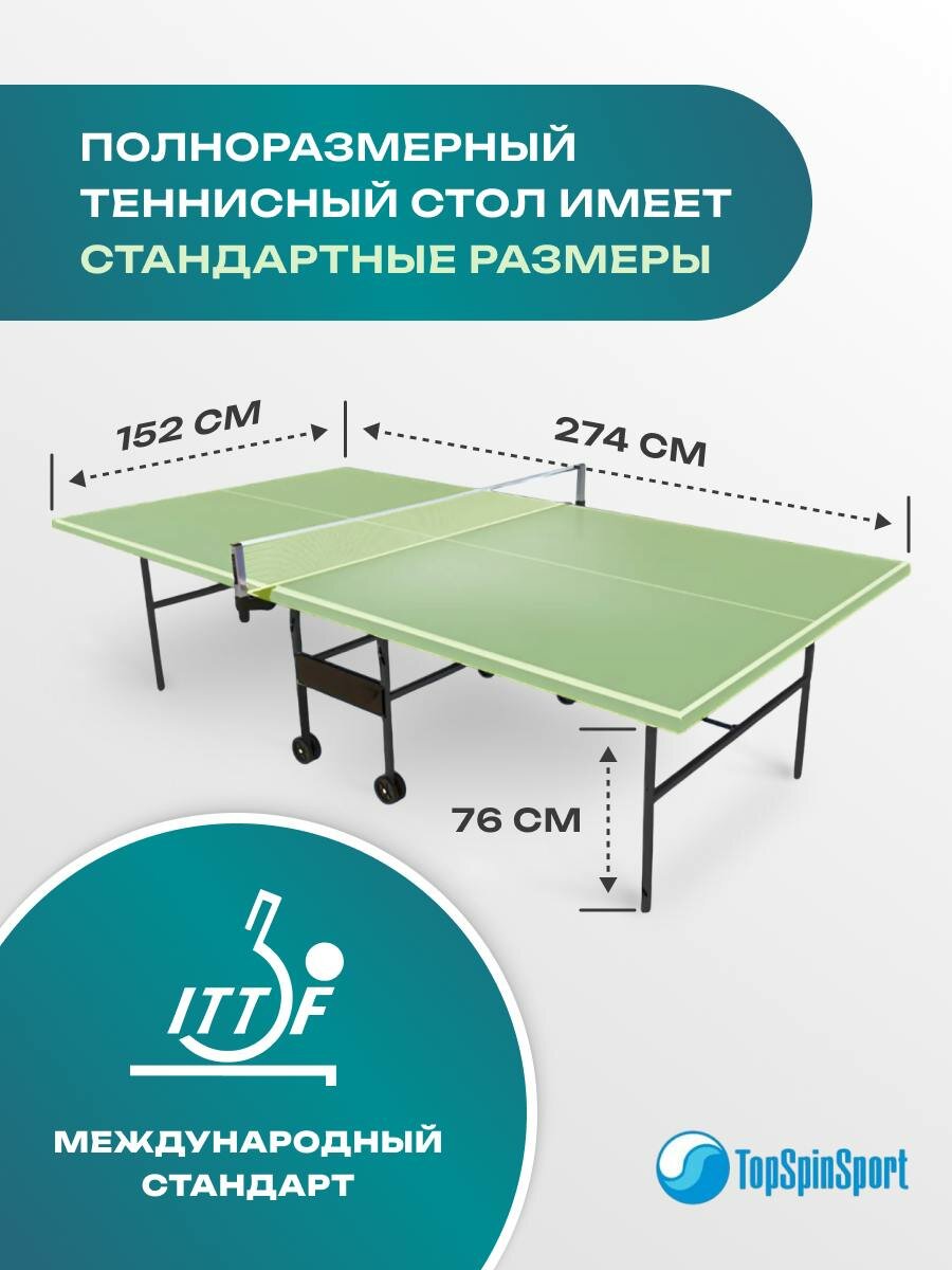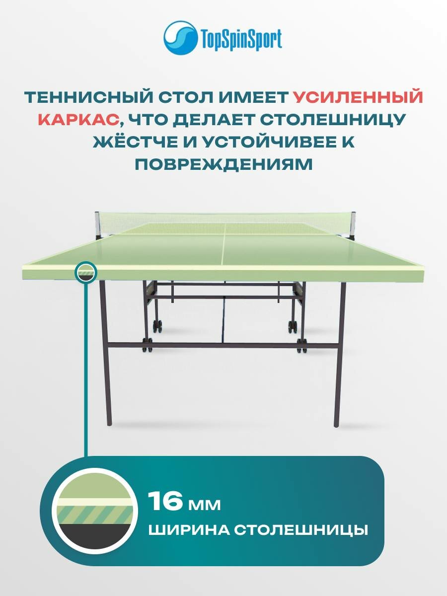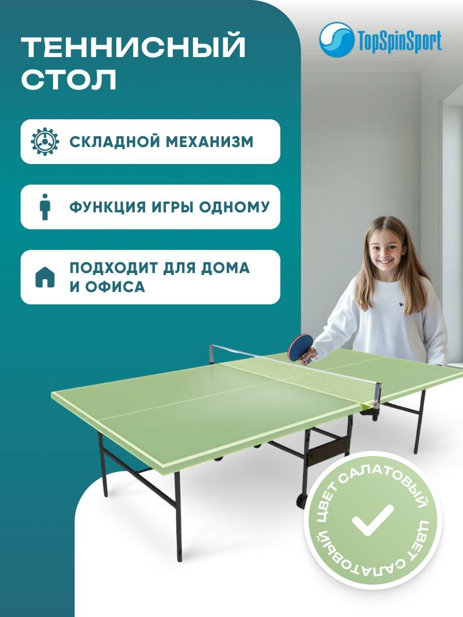 Теннисный стол TopSpinsport на колесах складной Салатовый информация: