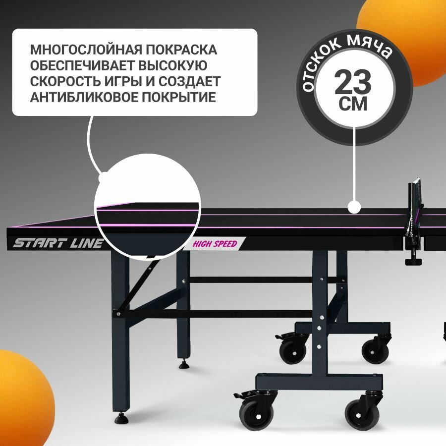 Стол теннисный Start Line Champion HIGH SPEED черный, профессиональный, складной, с колесами информация: