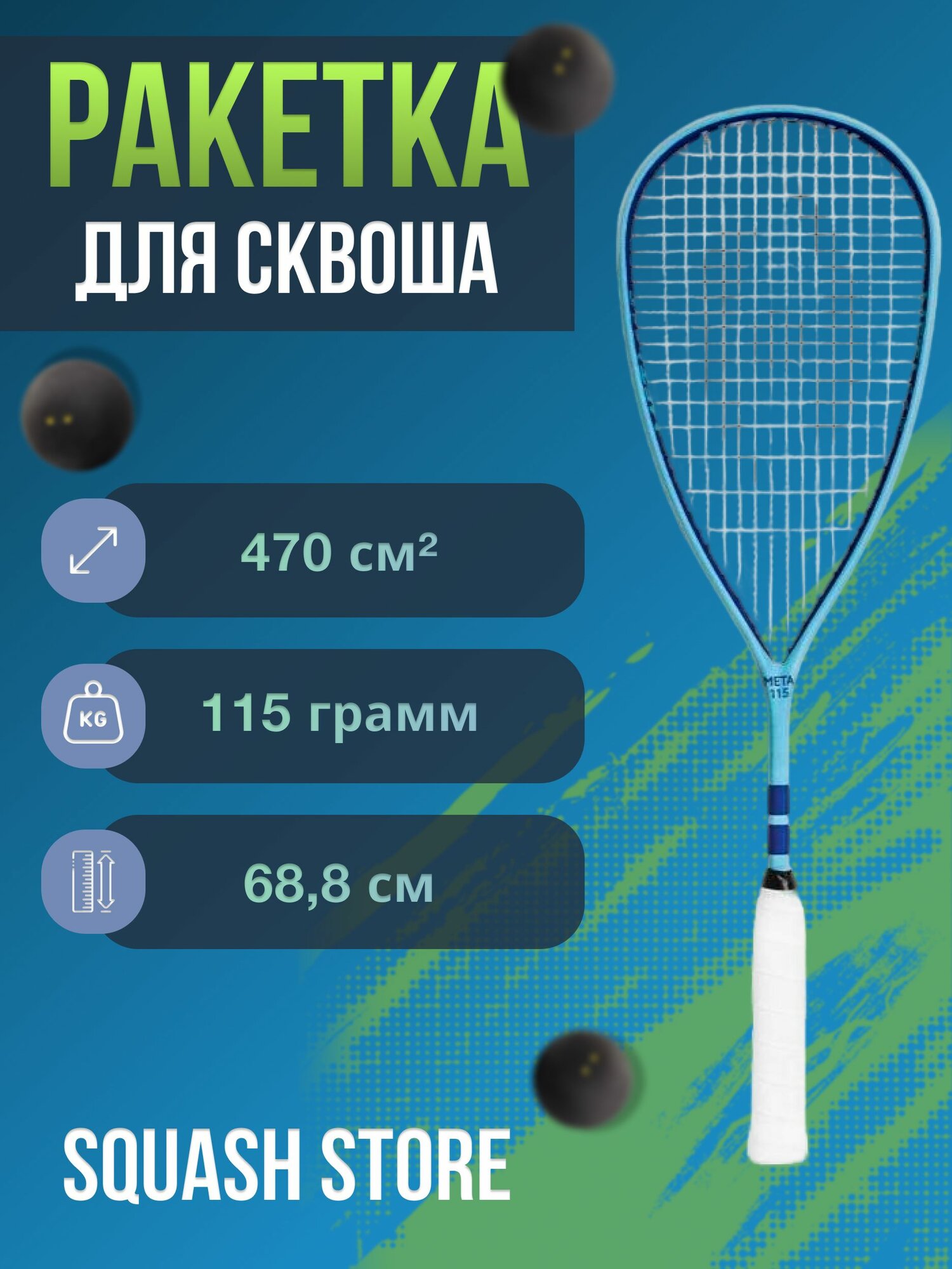 10 цен на Ракетка для сквоша Harrow "Meta Carolina(Blue/Royal Blue) , баланс 365, 115 гр.