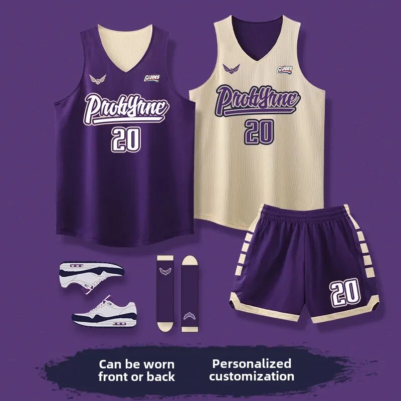 Баскетбольная форма, мужская, 3XL, двусторонняя, фиолетово-бежевая 1 366 ₽