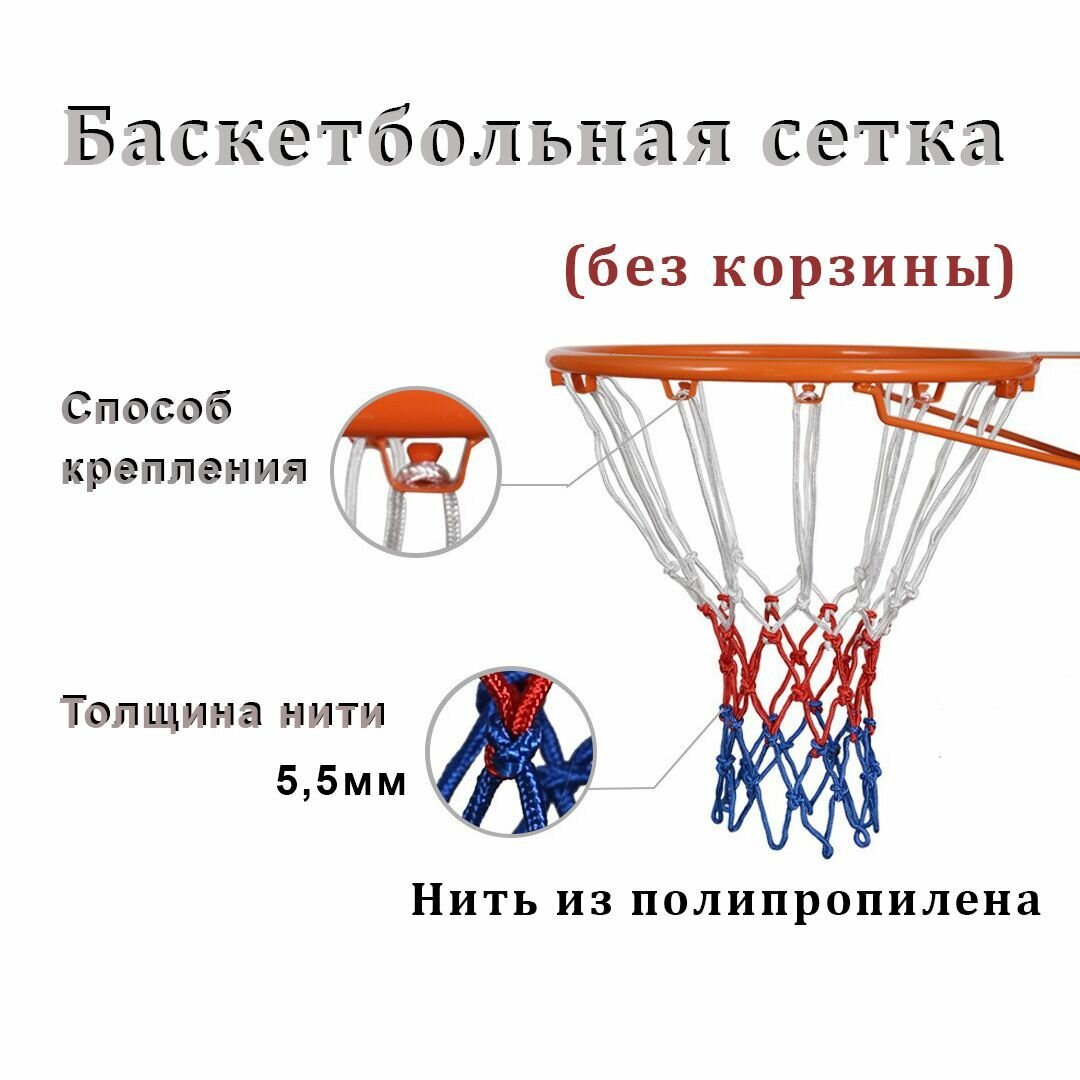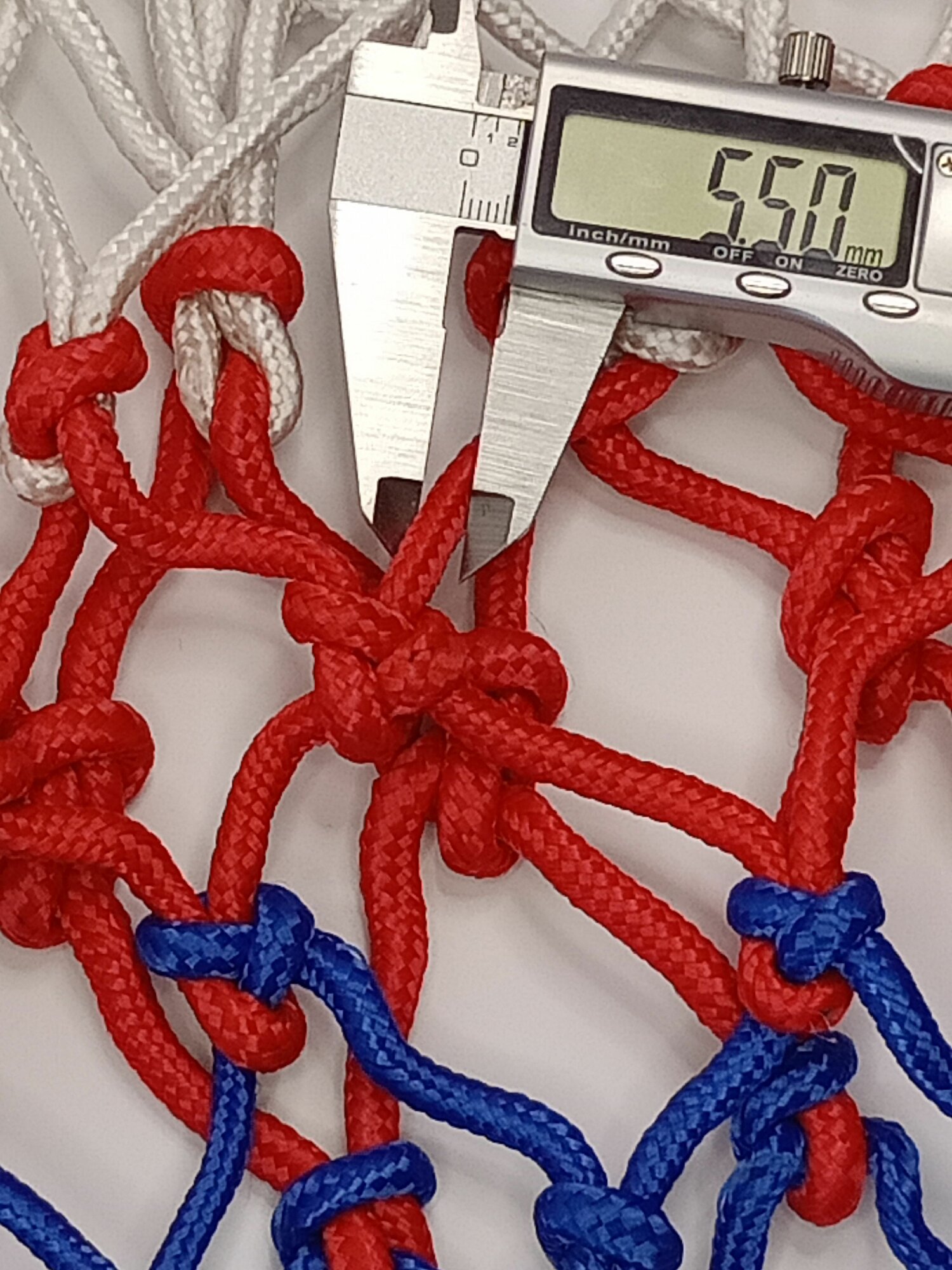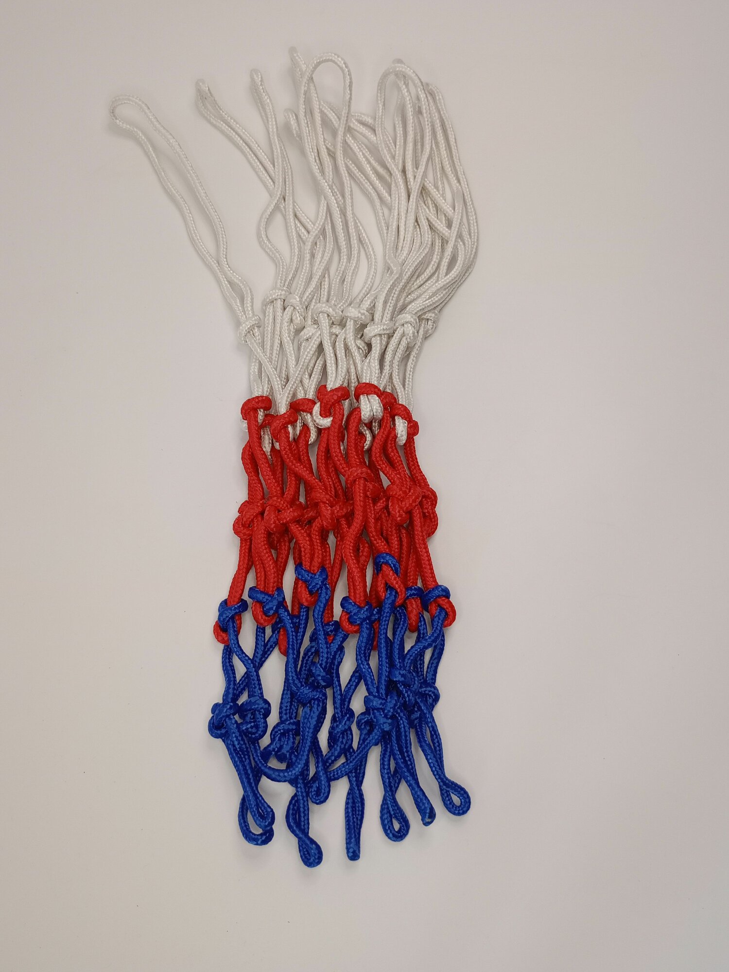 Баскетбольная сетка из полипропилена цвет Бел. крас. син. (толщина нити 5.5мм) информация:
