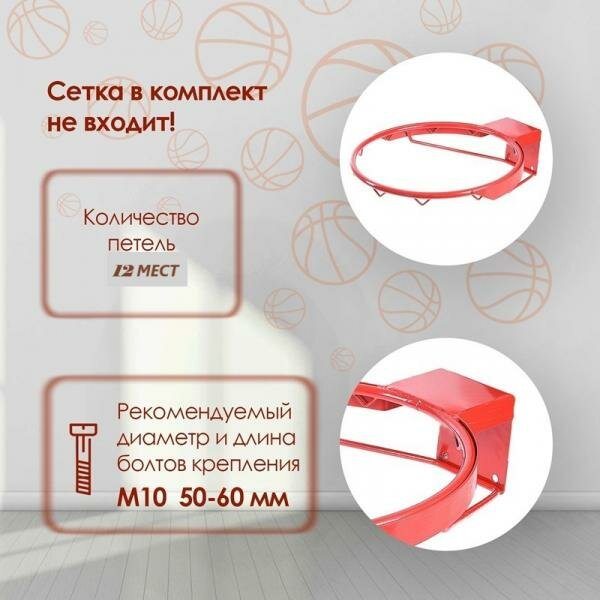 10 цен на Корзина баскетбольная №7 d-450мм антивандальная, 12 крючков, без сетки
