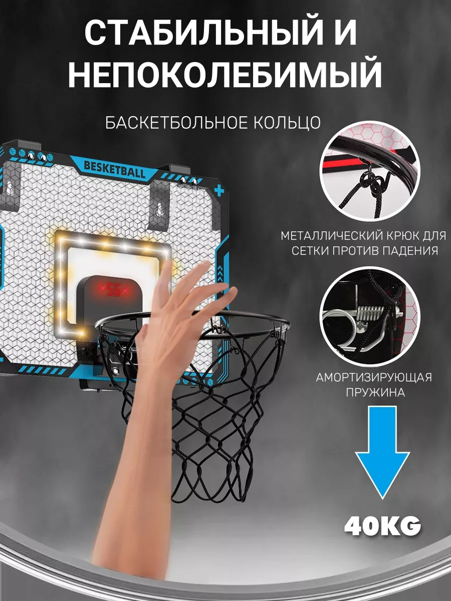 Баскетбольное кольцо со светодиодным счетчиком,Детский баскетбольный комплект с мячом и щитом информация: