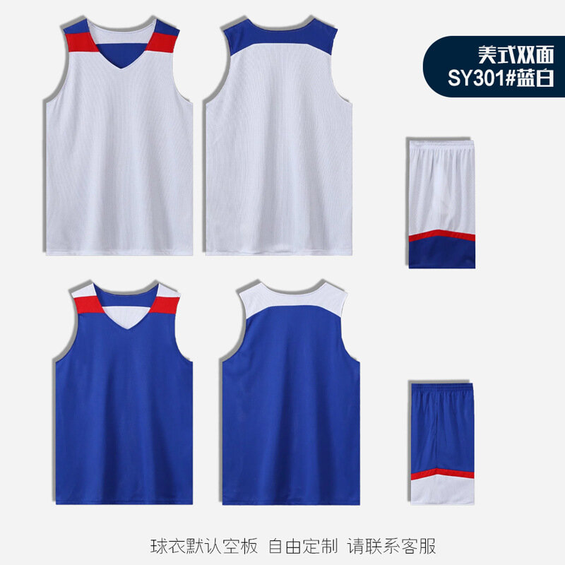 Баскетбольная форма, 5XL, двусторонняя, быстросохнущая, SY301, синяя и белая информация: