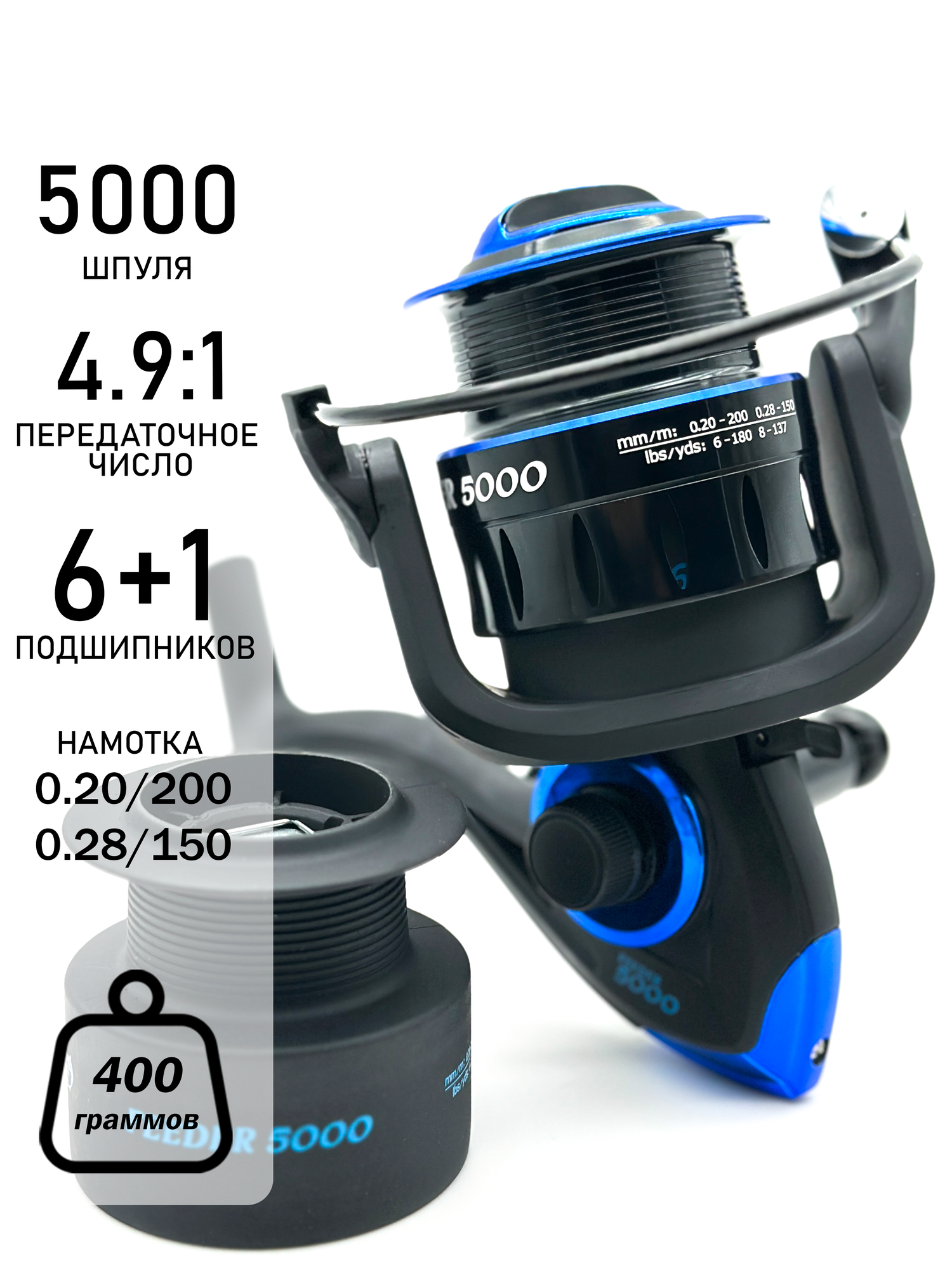 Катушка для спиннинга / катушка для рыбалки безынерционная 4000 для фидера и донки, дополнительная шпуля 1 540 ₽