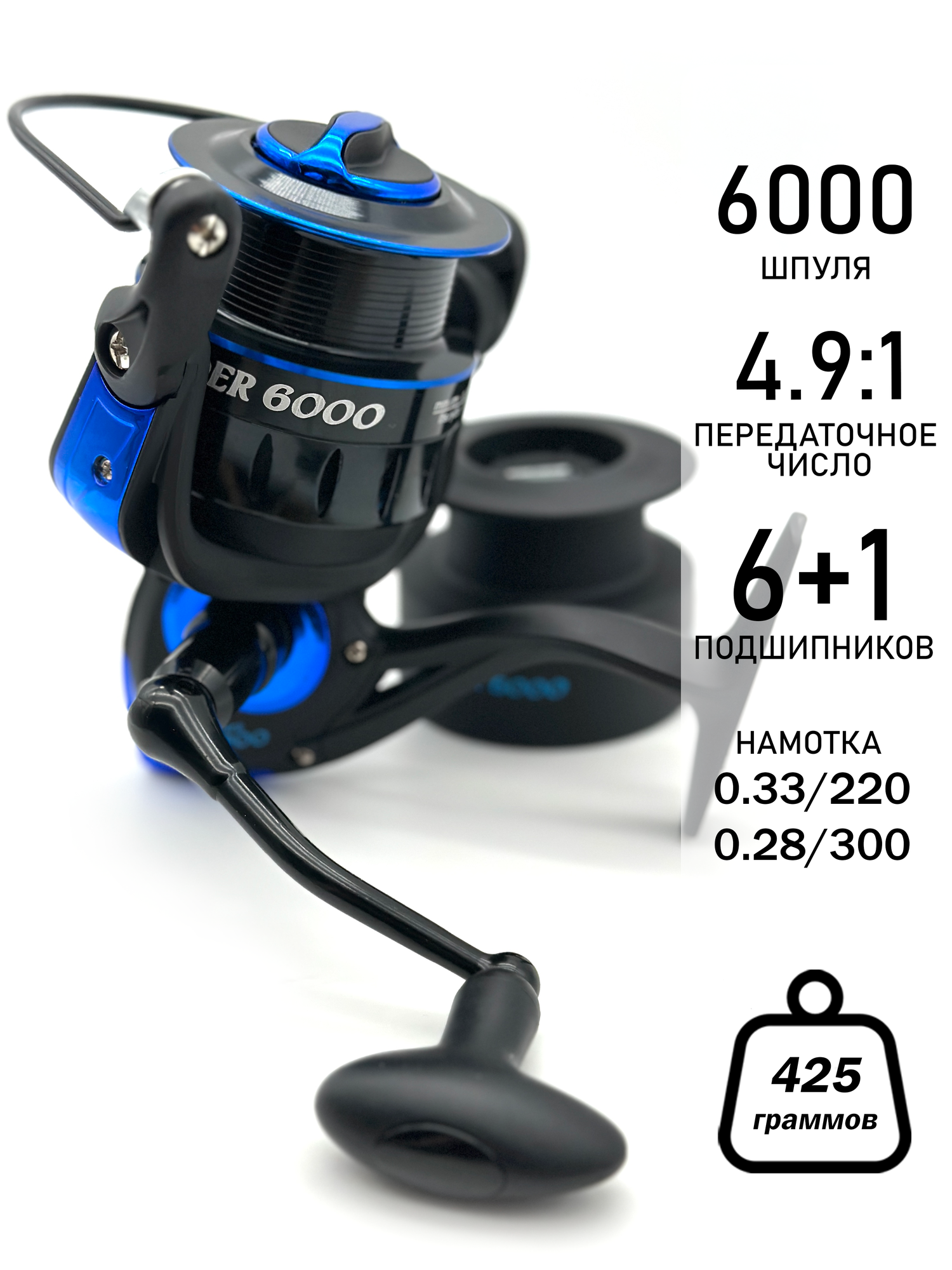 Катушка для спиннинга / катушка для рыбалки безынерционная 6000 для фидера и донки информация: