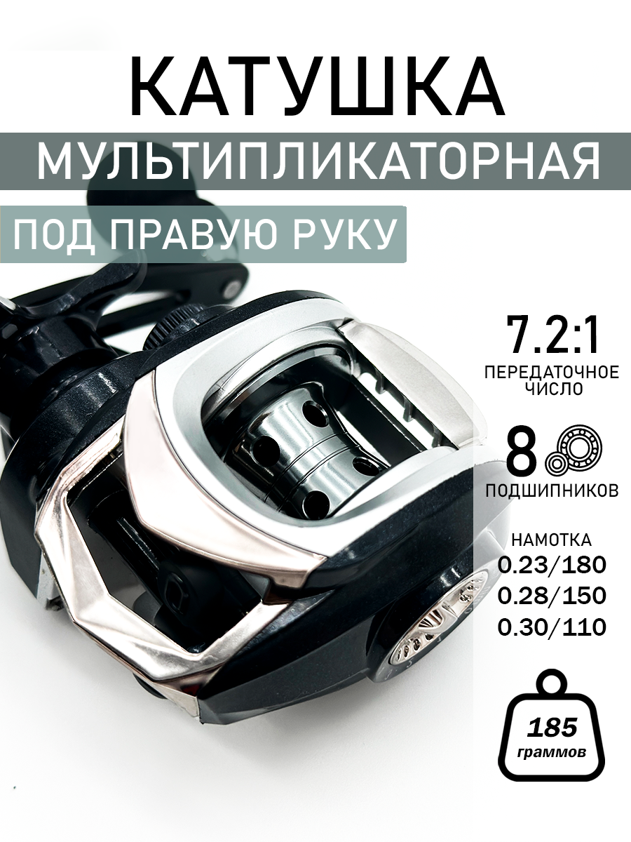Катушка мультипликаторная для рыбалки под правую руку, 8 подшипников информация: