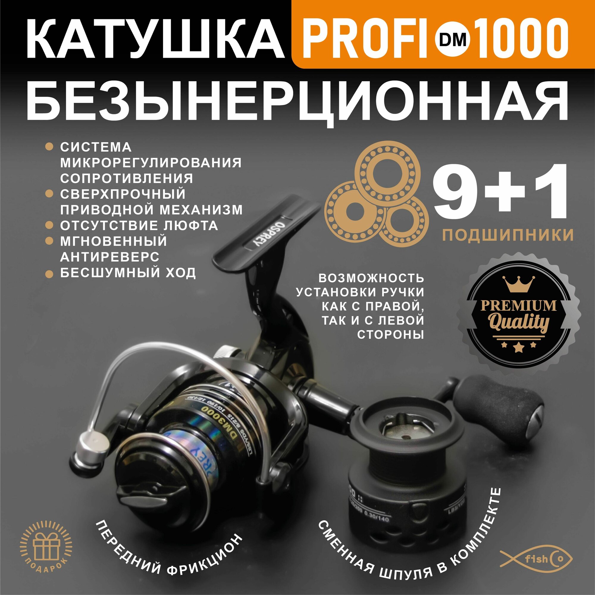 10 цен на Катушка рыболовная безынерционная Profi 2000 для спиннинга удочки