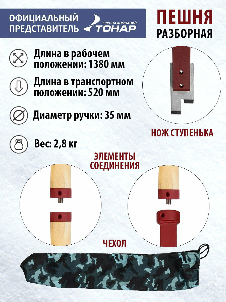Пешня разборная ПР-02 (нож Ступенька) Тонар / для зимней рыбалки информация: