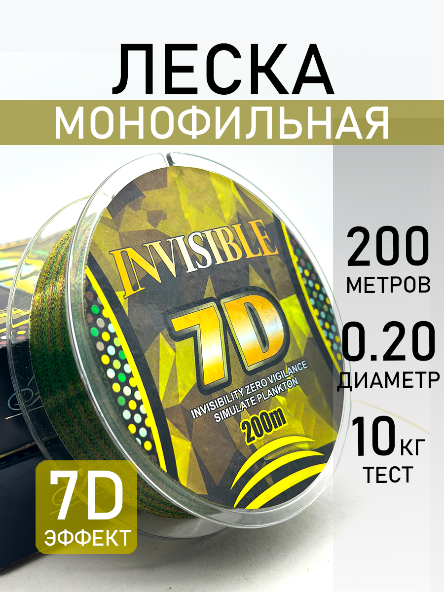 Леска рыболовная монофильная, разрывная нагрузка 10кг, диаметр 0,20мм, 200м информация:
