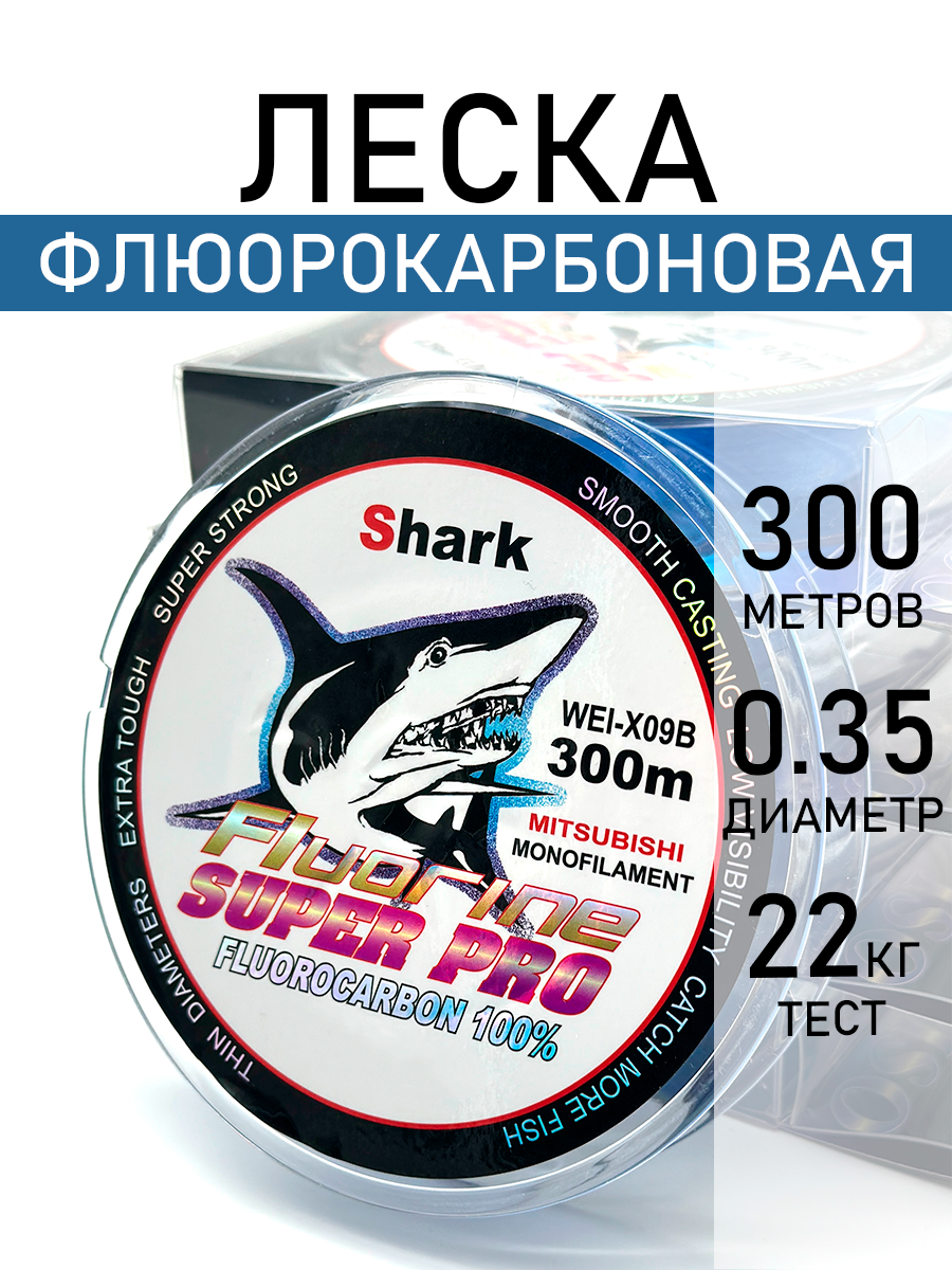 Леска флюорокарбоновая, разрывная нагрузка 22кг, диаметр 0.35мм, 300 метров информация: