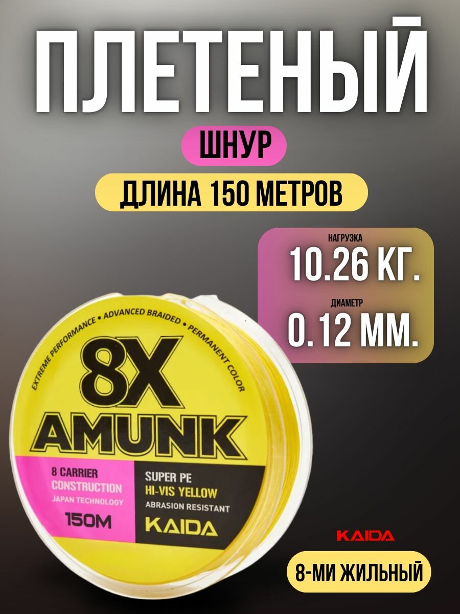 Плетеный шнур для рыбалки / леска плетенка для спиннинга и фидера Kaida 8X Amunk 150 м 0,12 мм желтый информация: