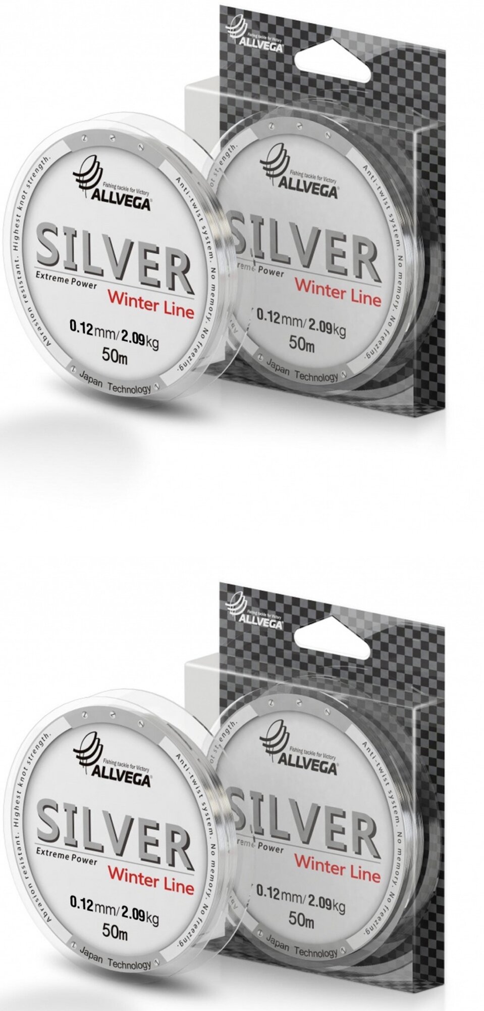 Леска монофильная для рыбалки ALLVEGA "Silver" набор 2 штуки по 50м 0,12мм (2,09кг) серебристая информация: