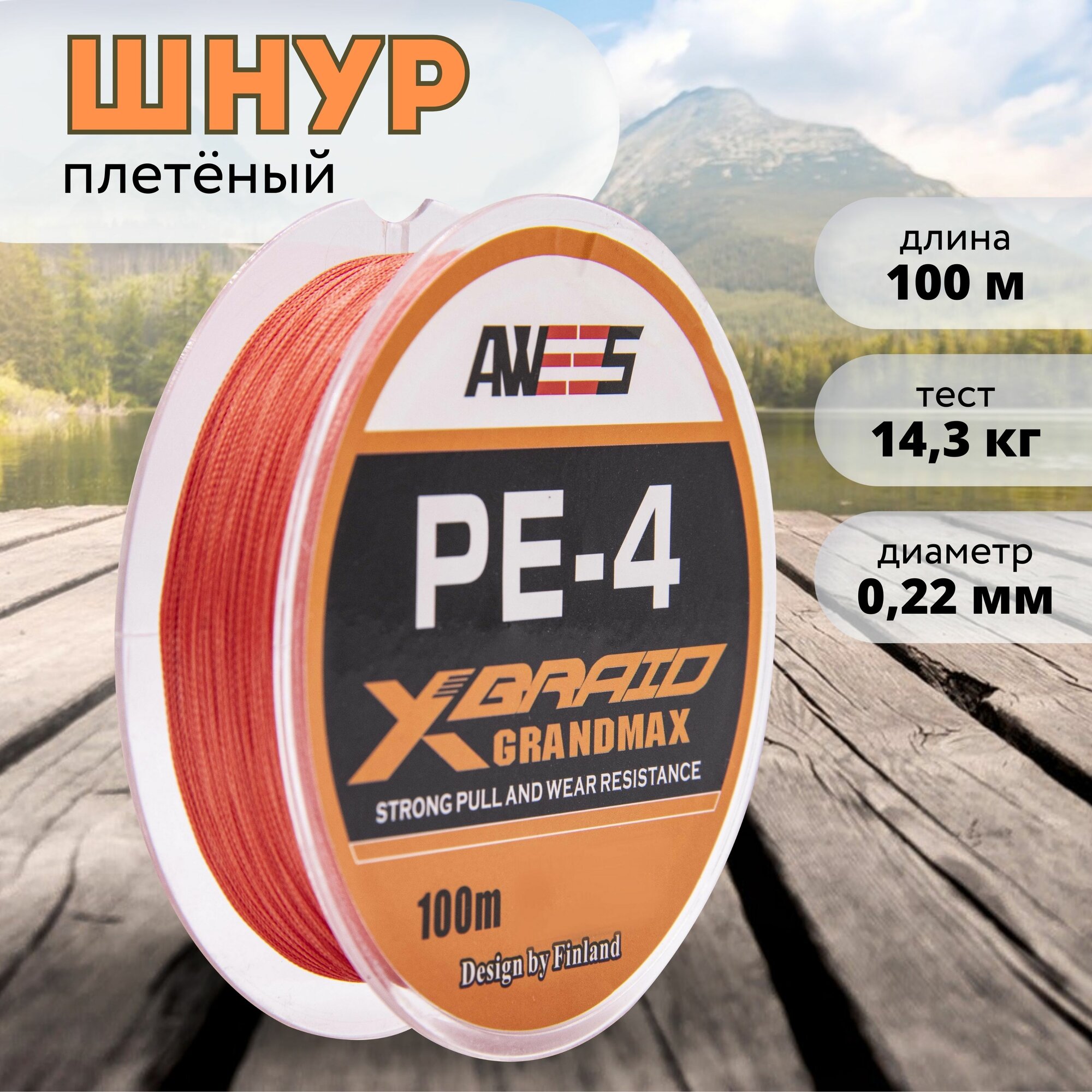 10 цен на Плетеный шнур 4-жильный AWEES PE-4 0.22, тест 14.3 кг, 100 м, оранжевый/плетёнка/леска плетеная/леска/шнур для рыбалки