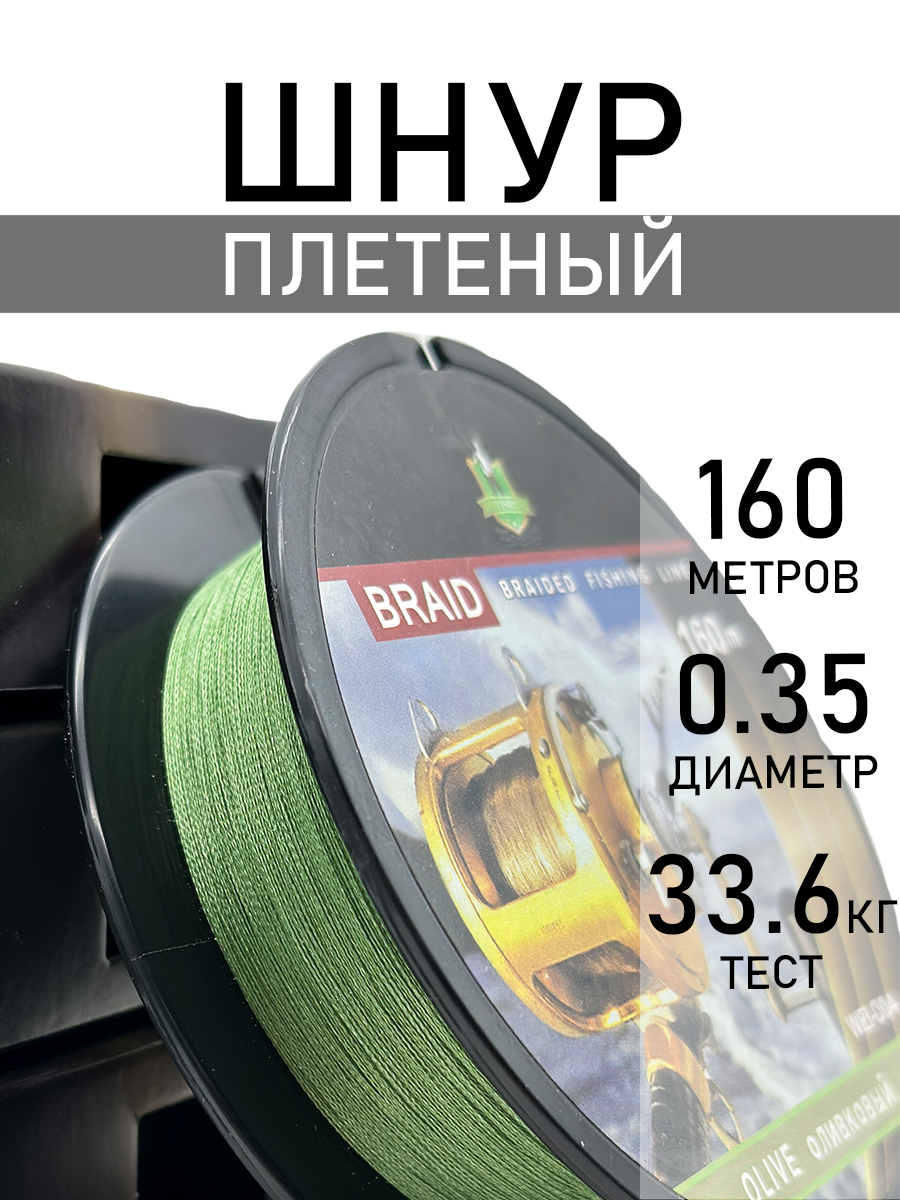 Шнур плетеный рыболовный, разрывная нагрузка 33,6 кг, диаметр 0.35 мм, 160 м информация: